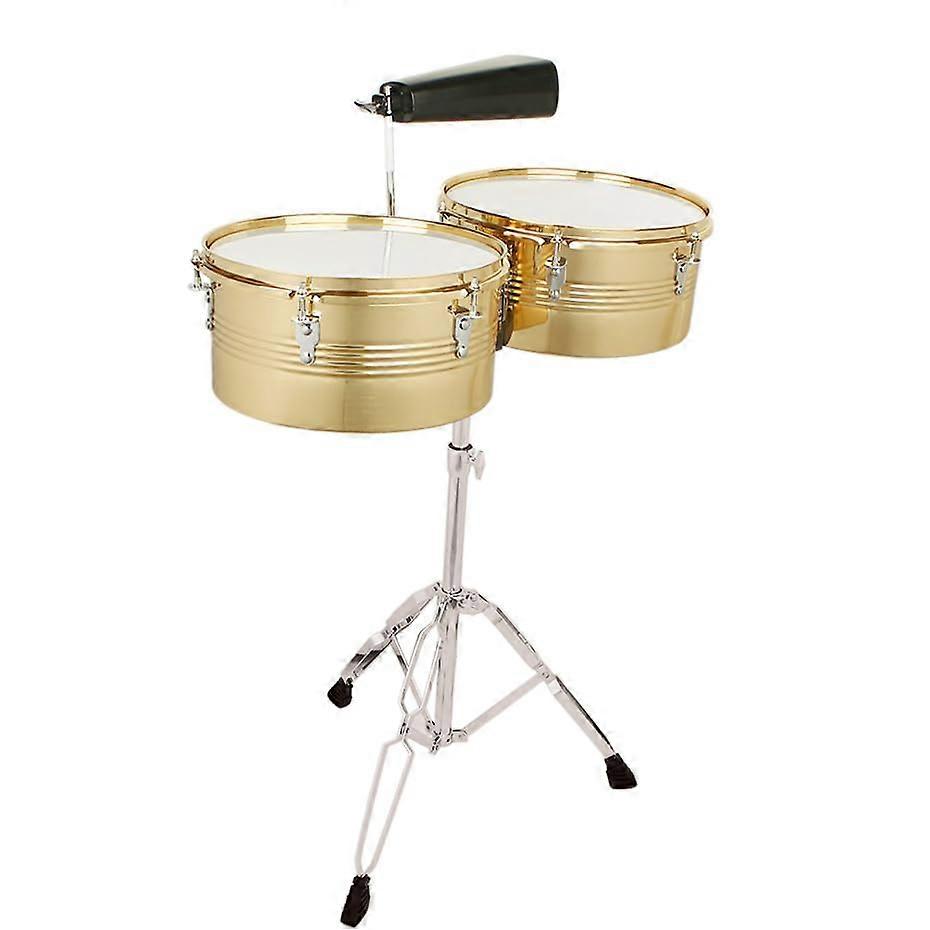 Timbales Drum Set 13 and 14 Inch Gold with Stand and Cowbell