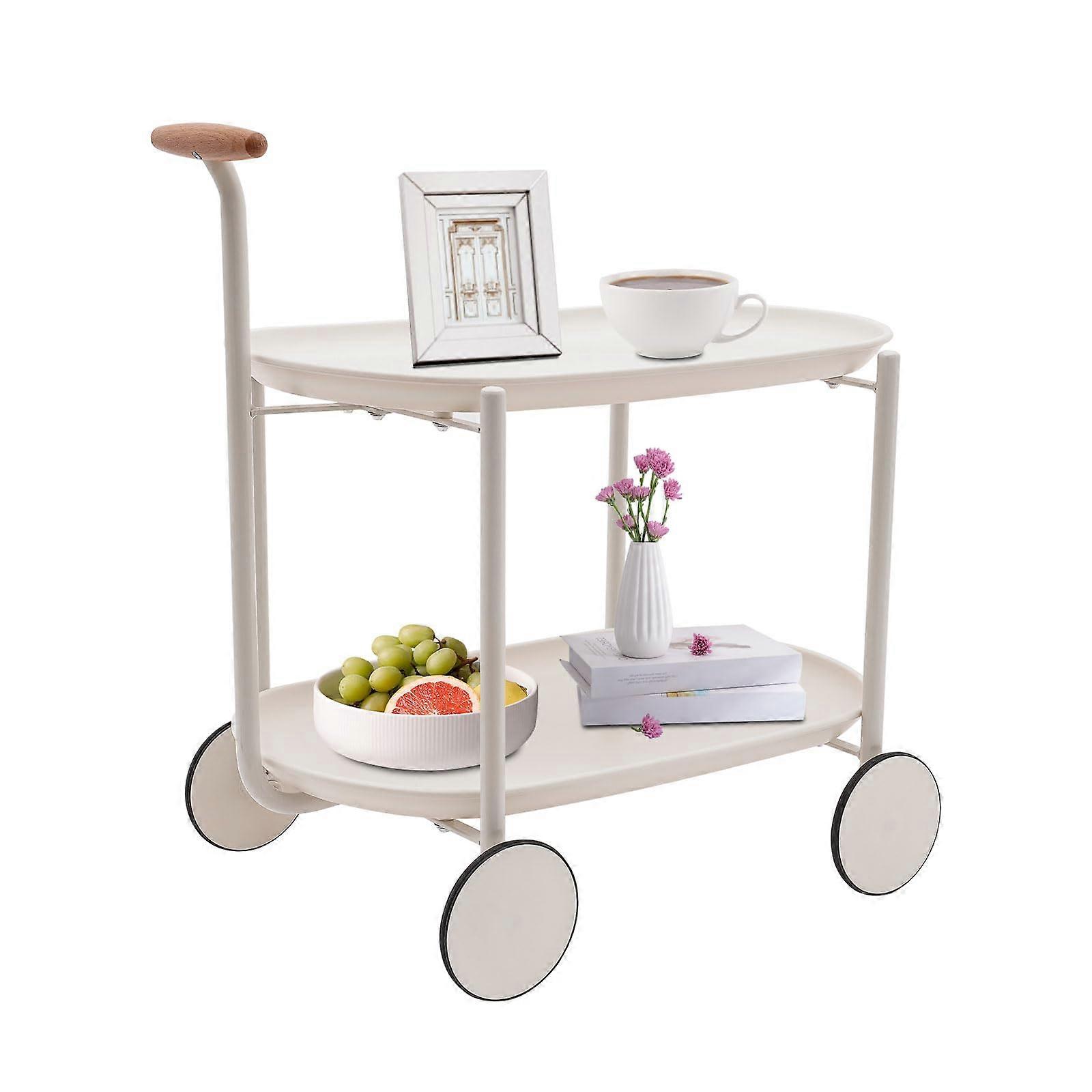 2 Tier White Bar Cart with Wheels and Handle, Rolling Serving Cart for Kitchen or Living Room