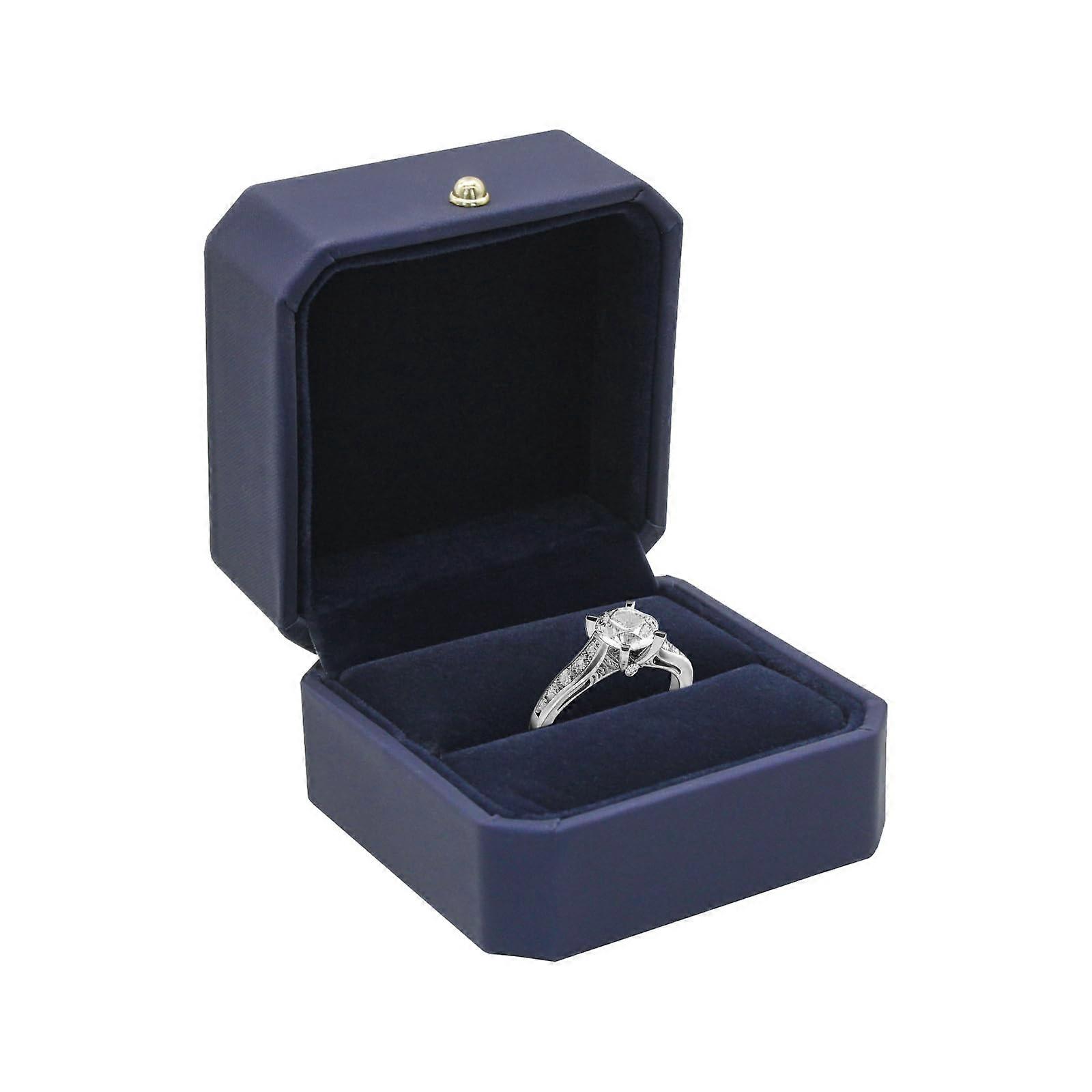 Engagement Ring Box Blue PU Leather Waterproof Ring Holder with Flip Cover for Wedding Proposal