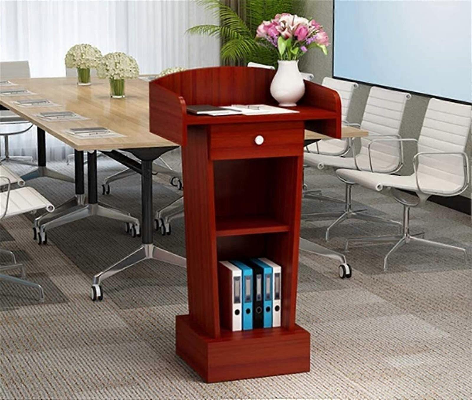 Solid Wood Floor Standing Wooden Lectern Pulpit Podium with Storage Drawers for Church and Wedding