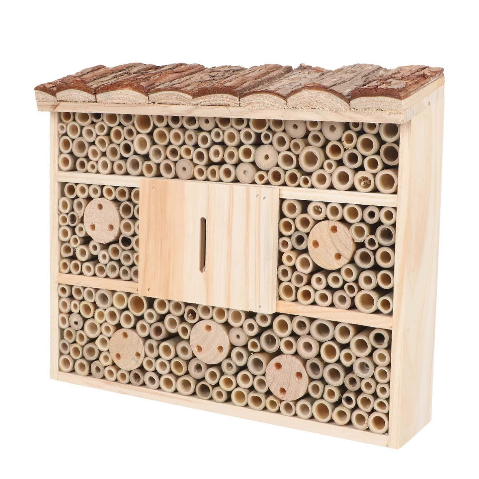 Wooden insect house that combines simple garden decoration with practical shelter for small pollinators and beneficial insects Key benefits Provides sheltered resting and nesting spots for small solitary bees, butterflies, and other garden insects, helping local pollination and garden health. Adds a natural, rustic decorative accent to outdoor spaces while remaining unobtrusive and compact. Low maintenance design that can be placed or mounted where insects and flowers are present. What it does and why you need it This wooden insect house creates small, protected cavities where solitary bees and other beneficial insects can nest or roost. Having a dedicated habitat helps attract pollinators to flower beds, vegetable patches, and potted plants, improving fruit set and flowering without chemical inputs. It also brings visible wildlife activity to outdoor spaces, connecting gardeners with the natural lifecycle around them. Key attributes Material: Natural wood construction for an organic look that fits garden settings. Function: Decorative insect hotel and small habitat for bees, butterflies, and other small insects. Compatibility: Suitable for solitary bees, small butterflies, and a range of beneficial insects that seek compact nesting or shelter sites. Size and placement: Compact design intended for small outdoor spaces such as balconies, patios, porches, and garden beds. Performance: Designed to offer sheltered cavities that encourage nesting and sheltering behavior in small insects. Requires minimal upkeep. Practical features customers use Decorative cabin style that integrates with planters, fences, or garden ornaments. Simple to position in sunny, sheltered locations near flowering plants to increase the chances of use by pollinators. Lightweight and easy to move as planting conditions change across seasons. Use scenarios Garden flower border: Place the insect house near a long bed of pollinatorfriendly flowers to encourage solitary bees to nest close to their food source, enhancing pollination of blooms and nearby vegetables. Balcony or patio: Install on a railing or set on a shelf among potted herbs and flowers to bring small insect activity to compact outdoor areas where ground habitat is limited. Community garden or allotment plot: Add to a communal growing area to support local pollinators and create an educational focal point for gardeners and visitors. Care and placement tips Position in a sheltered spot that receives morning sun and is protected from strong winds and heavy rain. Place near a variety of flowering plants to provide convenient food sources for visitors. Inspect occasionally for debris and relocate if persistent moisture or predators are observed. What makes it stand out Combines practical insect habitat with attractive garden ornament design for users who want both function and style in outdoor accessories. Compact footprint suitable for small and urban outdoor spaces where natural nesting sites are scarce. This wooden insect house offers a straightforward way to support small pollinators and bring natural activity to outdoor spaces while serving as an appealing garden ornament.