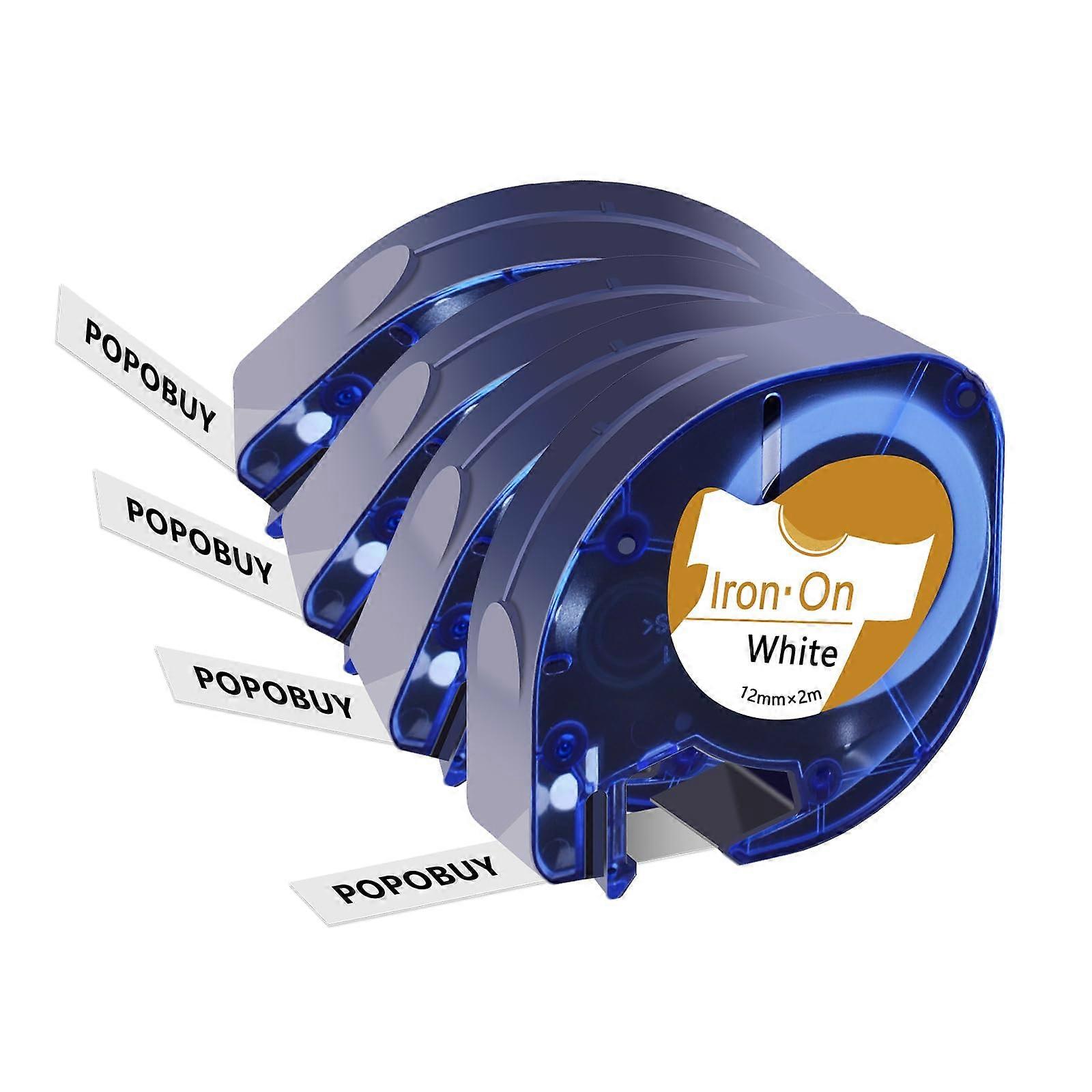 Iron On Clothing Labels for Dymo LetraTag, 4 Pack Fabric Label Maker Tape Refills Black on White