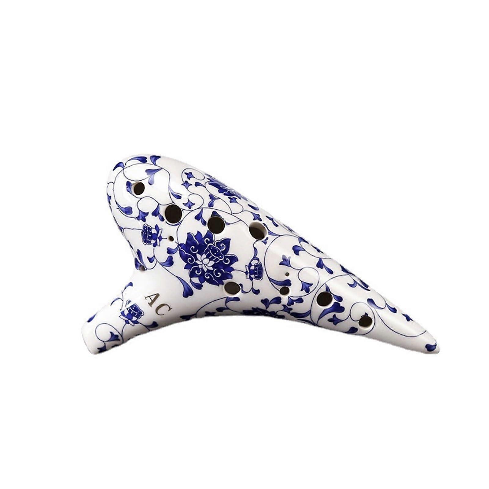 12Hole Alto C Ceramic Ocarina Flute Blue and White Smoked Finish for Beginner Music Practice