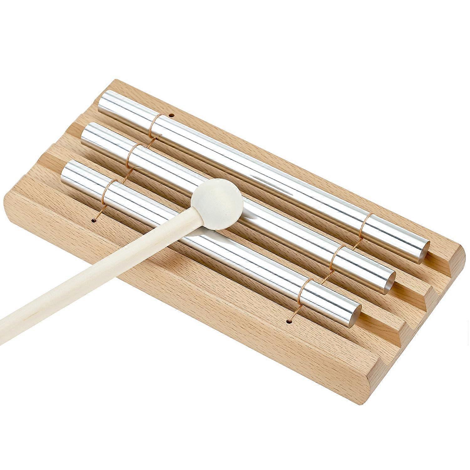 Meditation Chime with Three Tone Aluminum Rods, Beech Wood Base and Mallet for Mindfulness Yoga