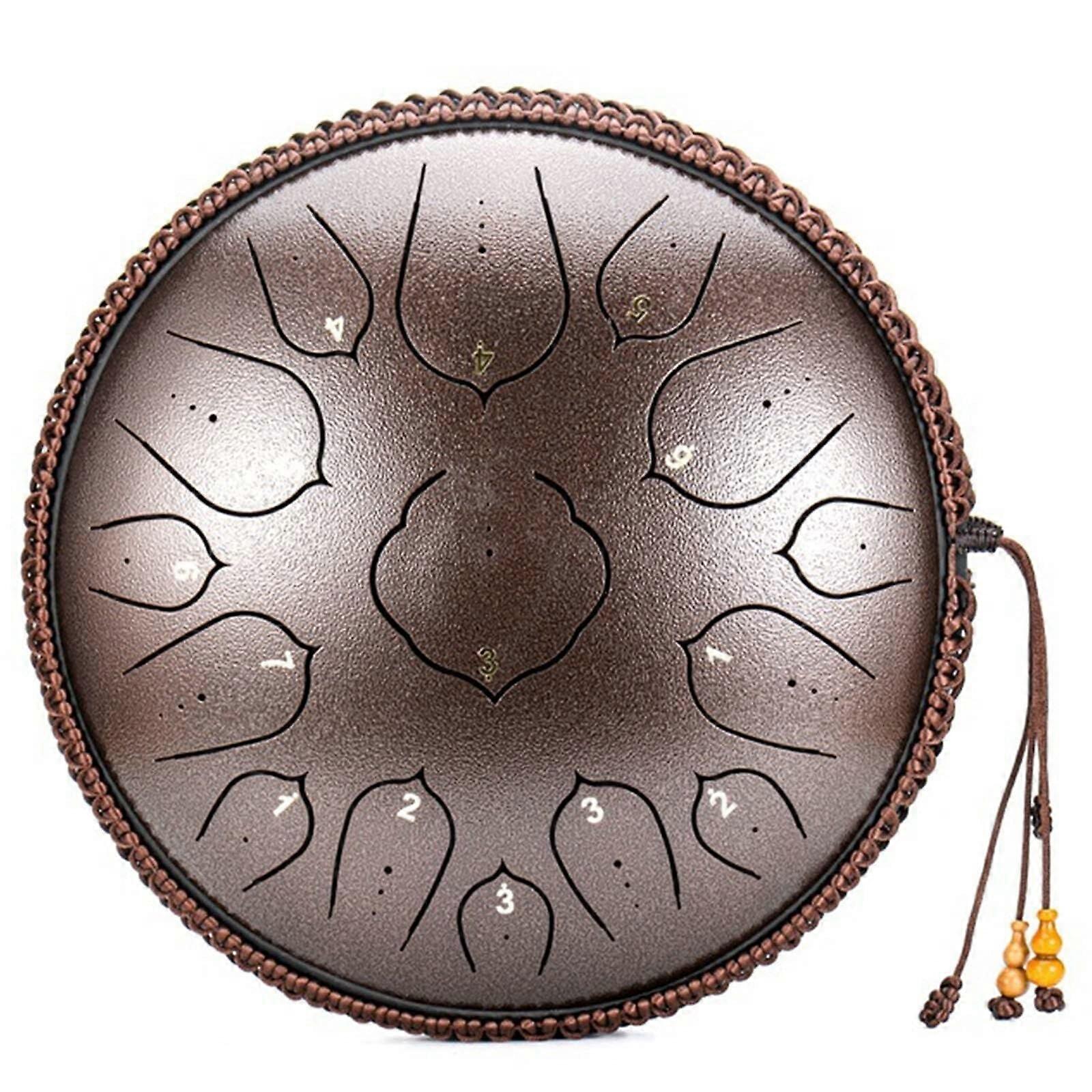 Steel Tongue Drum 14 Inch SteelTitanium — 15 Notes in D Key Discover a 14inch steel tongue drum crafted from steeltitanium with 15 handcut, handtuned notes in the D key. Its clear, belllike tones deliver rich resonance and sustained sustain, suitable for practice, group classes, and performances. Key benefits Professional sound quality: Handtuned notes produce a balanced, resonant voice that supports melodic exploration by beginners and experienced players. Easy to play: No formal music training required. Play with the included mallets or with your hands to create immediate, pleasing melodies. Built to last: Steeltitanium construction and a protective lacquer finish resist tarnishing and surface wear while maintaining tone clarity. Ready for transport: Includes a padded travel bag, mallets, and music scores for quick setup and practice anywhere. Features Size: 14 inches diameter for a full, projecting sound that remains compact and portable. Material: Steeltitanium body for stable tuning and bright, clear timbre. Notes: 15 precisely handcut notes tuned to the D key for versatile melodic possibilities. Finish: Protective lacquer finish and elegant rope decoration for durability and a refined look. Accessories: Travel bag, pair of mallets, and music scores included. Practical use scenarios Yoga and meditation classes: Use the drum to create a steady, calming soundscape that supports breath work and focused attention. Music education and early childhood programs: Introduce rhythm and pitch in a handson way that encourages listening, coordination, and creative play. Home practice and group jams: Portable design makes it easy to bring the instrument to small performances, community circles, or relaxed home sessions. Why choose this drum This steel tongue drum combines precision craftsmanship with intuitive playability. Its 15note D tuning, durable finish, and complete accessory set make it a versatile instrument for learning, teaching, and creative expression.