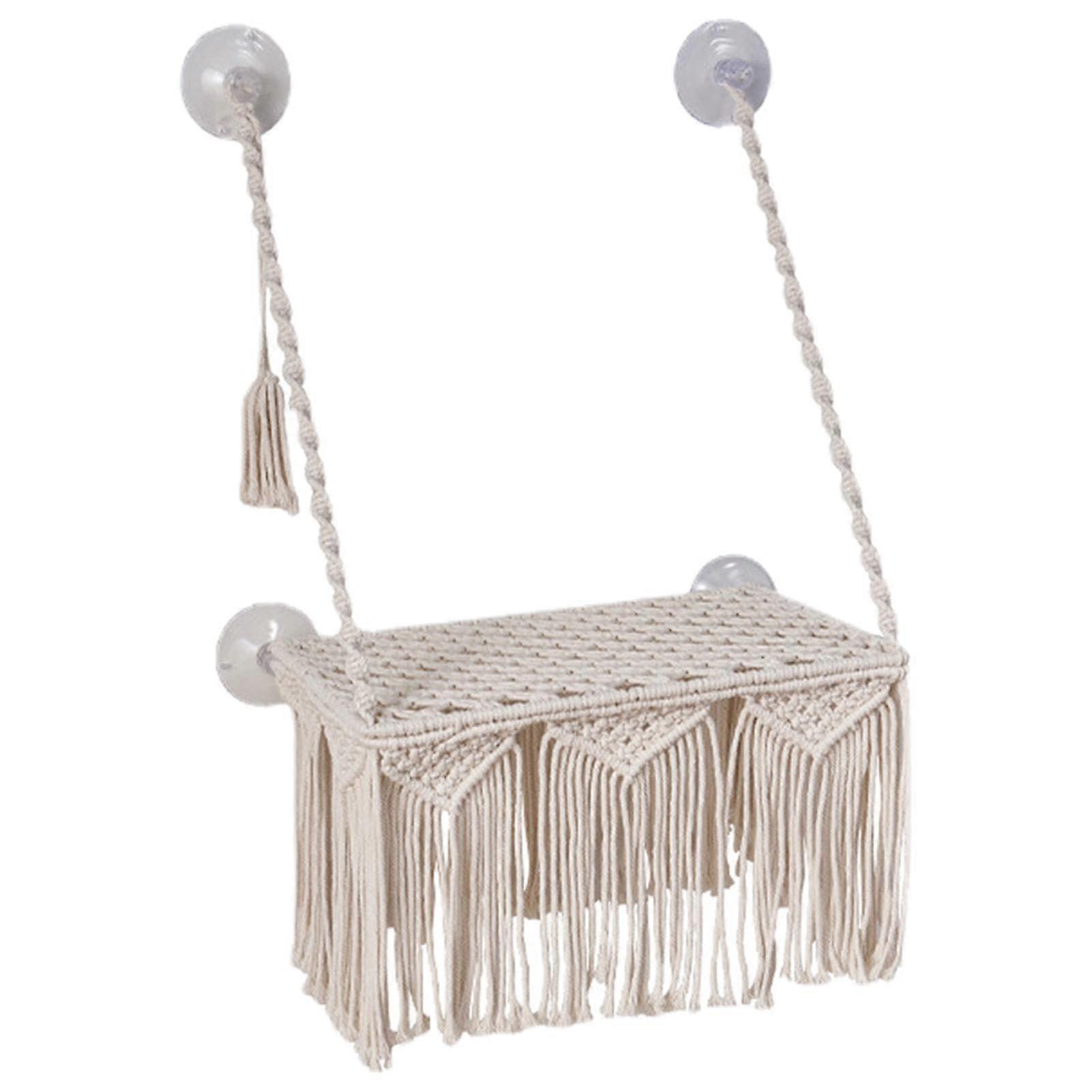 Bohemian Macrame Cat Window Hammock with Handmade Cotton Rope and Secure Suction Cups, 19.1x11.8