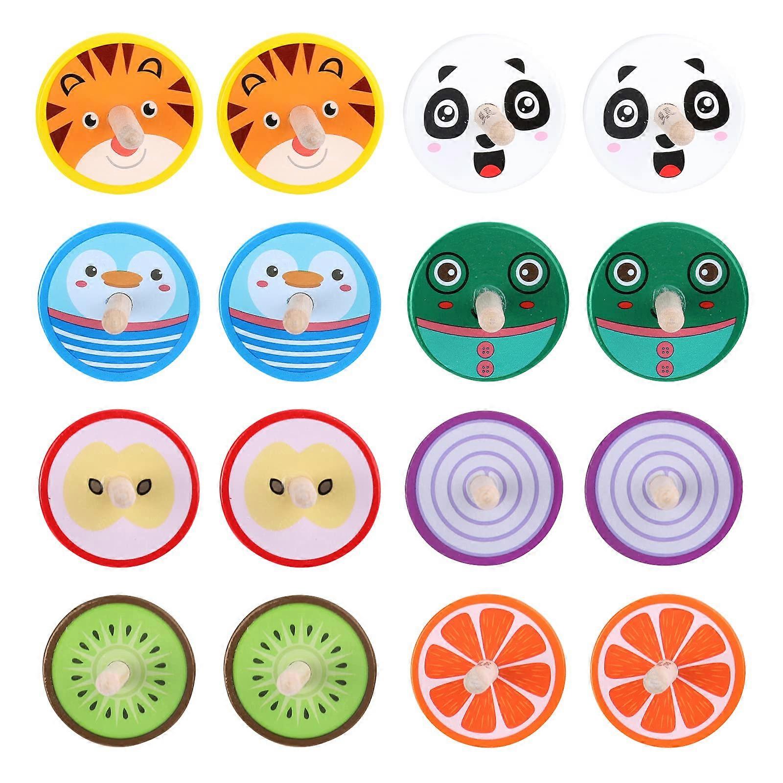 Wooden Spinning Tops Set, 16pcs Handmade Painted Toys for Kids and Toddlers, Smooth Safe Finish