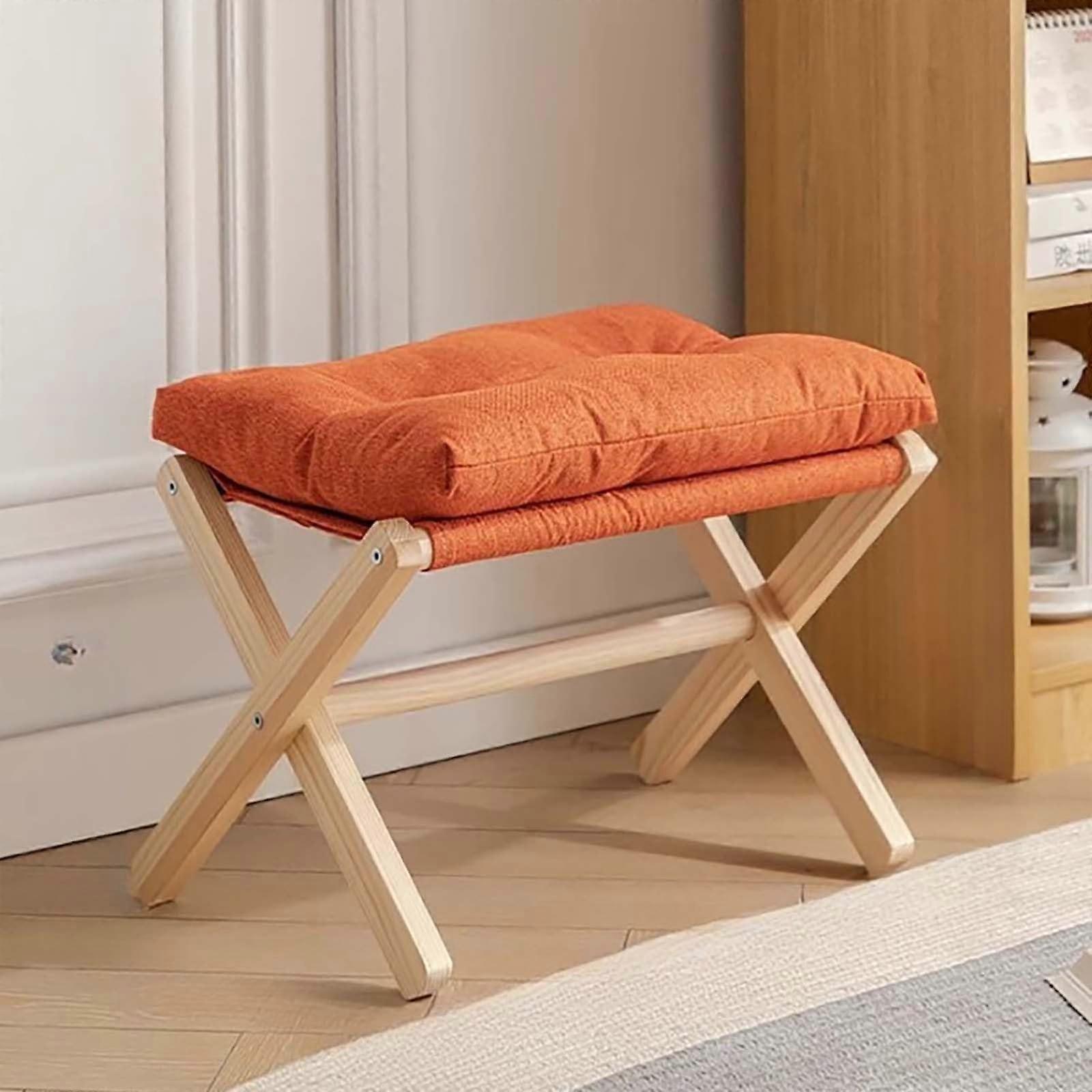Foldable Footrest Stool with Removable Velvet Cushion, Wooden Shoe Changing Bench 45x33x40cm
