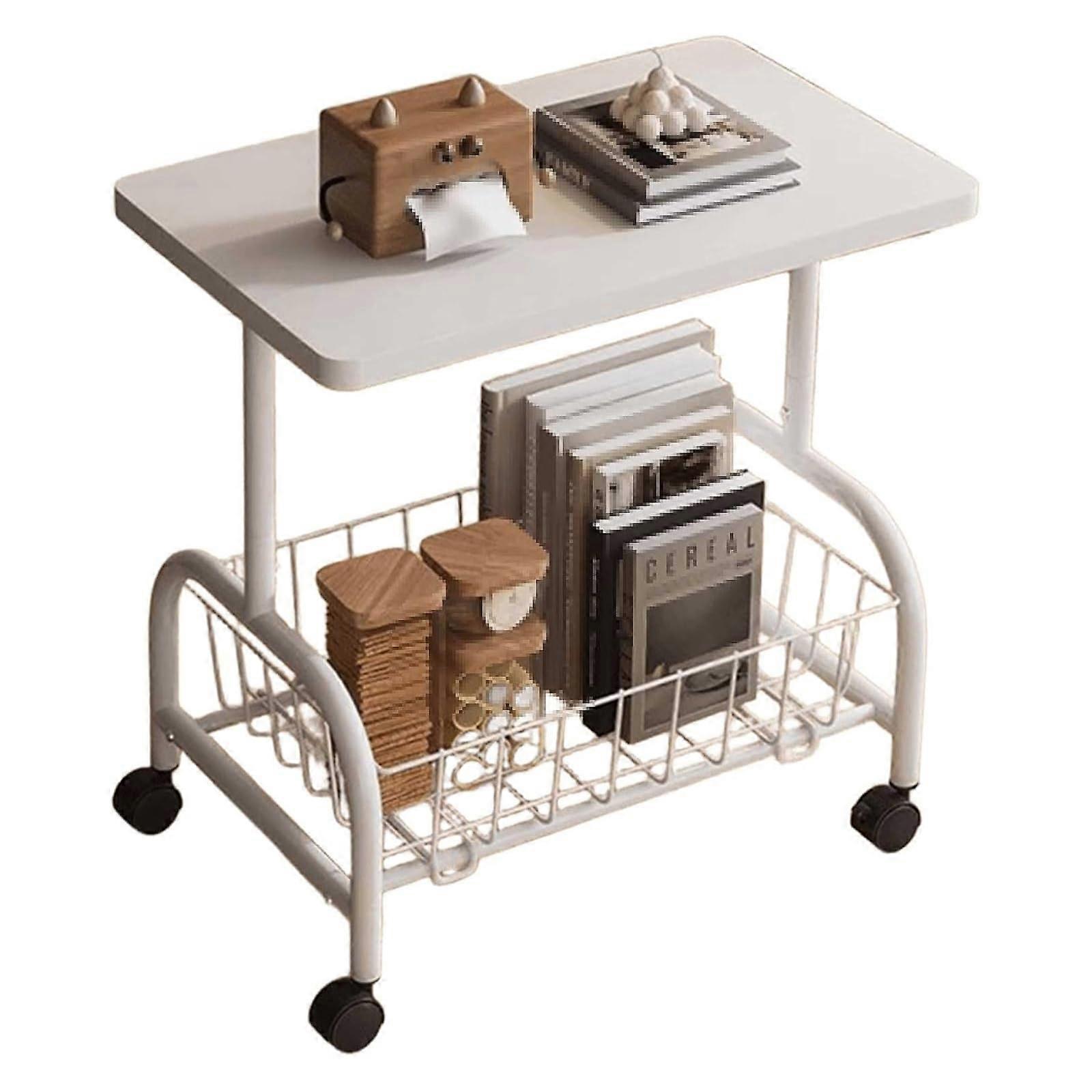 White Bedside Table with Wheels, Removable Basket Storage, Small Rolling Side Table for Bedroom