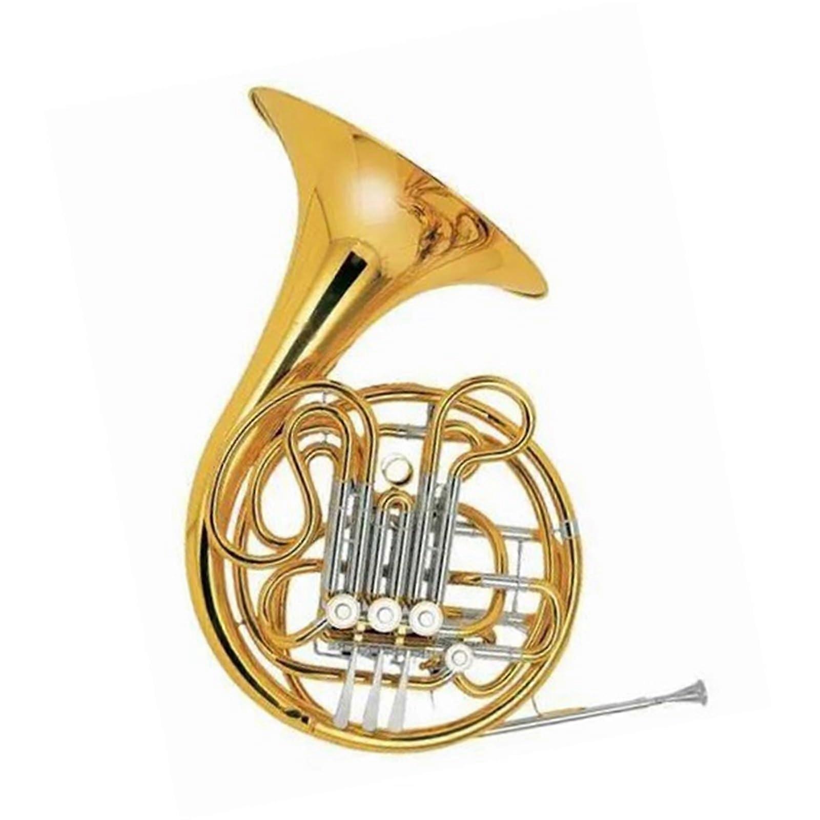 This French Horn combines durable construction and playerfocused design to deliver a rich, resonant sound while remaining comfortable for extended play. It is suited for beginners and music lovers who need a reliable instrument with professional tone quality. Key benefits Comfortable in the hand: ergonomic feel reduces fatigue during practice and performance. Durable keys: reinforced keys are stronger and less prone to breaking or misalignment, lowering maintenance needs and downtime. All gold brass construction: material provides long lasting resonance and a warm, projecting tone. Attention to detail: precision crafting enhances playability and consistent performance. Versatile for learning and performance: designed to serve students, hobbyists, and performers on stage. Important attributes Function: brass French Horn designed to produce a rich, fullbodied sound for solo and ensemble use. Material: all gold brass construction for sustained tonal quality and durability. Performance: resonant tone with reliable key action that supports both technical passages and lyrical playing. User level: suitable for beginners as well as experienced music lovers seeking an elegant, dependable instrument. Use scenarios School or private lessons: comfortable ergonomics and durable keys make this horn ideal for daily practice and student use. Orchestra and chamber music: rich, projecting tone fits within ensemble settings and supports blend and balance. Recitals and stage appearances: polished appearance and reliable performance present a professional presence on stage. A practical choice for players who want an elegant looking instrument that performs dependably, with materials and construction focused on tone longevity and reduced maintenance.