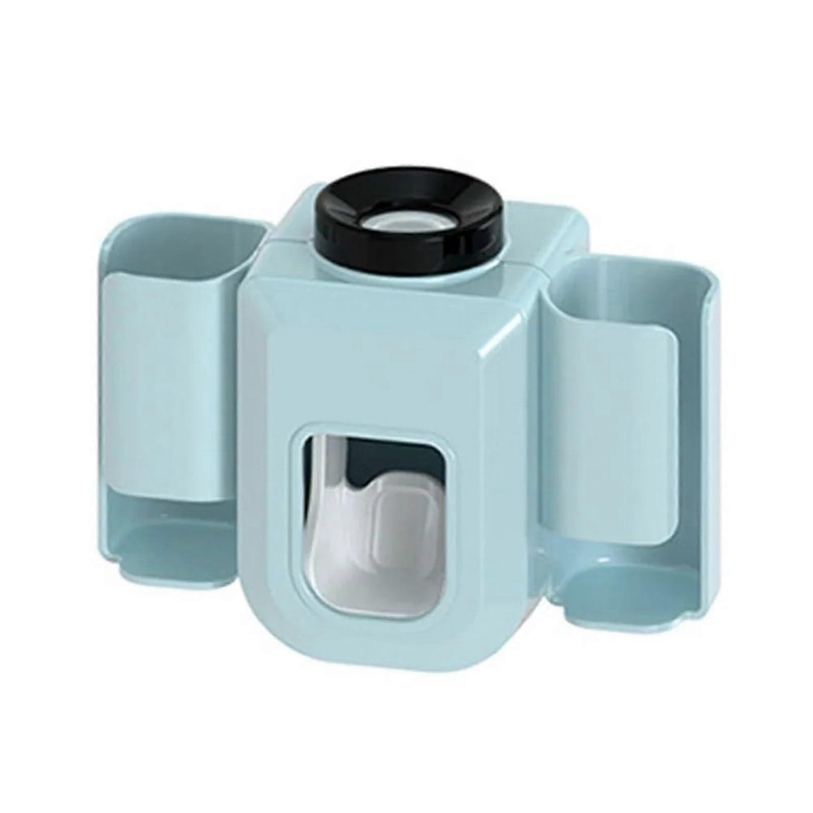 Automatic Toothpaste Dispenser and Wall Mounted Toothbrush Holder Punch Bathroom Storage Rack Blue