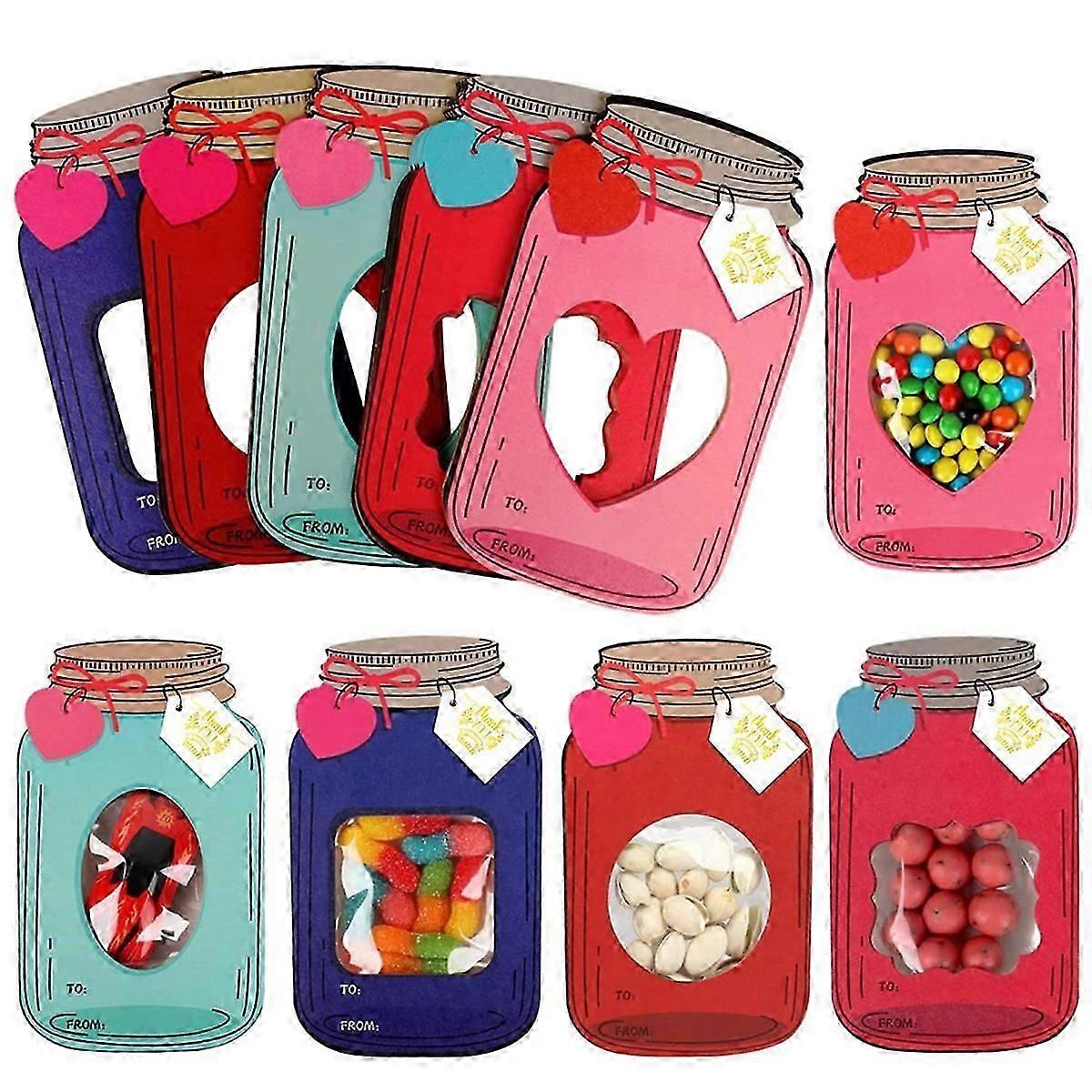 50 Pack Valentines Cards for Adults, Jar Valentines Day Cards, SUPER CUTE AND SPECIAL VALENTINE'S DAY GIFT: Our jar valentine's day card set includes 50 Paper cards (5 colors), don't forget to add your own favorite candies or favors for your valentine's day gift card. PERSONALIZED CANDY JAR VALENTINE'S DAY CARD: Candy jar kids valentine's day card measures approximately 5.9 x 3.5 inches. You can wrap your own favorite candies, chocolates, cookies, nuts, dried fruits or other small gifts and stick them on the back of the Valentine's Day card to give as Valentine's Day gifts to kids, classrooms and schools. Super cute and super easy. Valentine's Day Greeting Cards are made of high quality paper, the clear zippered polyethylene bags are made of food grade material, the bottom gusset design allows the bags to stand on their own when filled with items, and not easy to tear, perfect for packing small amounts of candy, chocolate, , toys, or any other small gift you would like to give. DESIGN CHILDREN'S VALENTINE'S DAY GREETING CARDS: Our Valentine's Day Greeting Cards come in 5 color designs The cards are hollow in the middle. Simply fill out the "To" and "From" fields, wrap your own candy or other small gift, and on the back of the card. Happy Valentine's Day Perfect for Valentine's Day party favors, school classroom exchange gifts, school classroom prizes, school treats, class Valentine's Day activities, family fun or any Valentine's Day occasion. This would make a fun Valentine's Day gift and the best Valentine's Day gift card for a child or someone you love. Colour:As Shown Material:Paper Package Contents: 50 x Snack bag set Only the above package content, other products are not included. Note: Light reflection and different displays may cause the color of the item in the picture a little different from the real thing. The measurement allowed error is +/- 1-3cm.