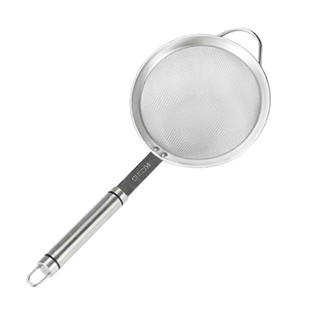 This oil strainer is made of food-grade stainless steel, it has a long enough handle to keep your arm from sputtering oils while you cook and fry your favorite dishes, noodles, vegetables, meats, French fries, and more! Treat your family to delicious food every night with ease. When you need to use them in a way for a long time, the product will quickly become your good helper. Features - Material: Stainless steel. - Size: 30.50X12.00X2.50cm/11.99X4.72X0.98inch. - The product is made of premium stainless steel materials, and the flour sifter is and useful for use. - Long handle design safe use and comfortable grip. The product has practical functions. - Easy to clean, the handle's perforated design allows you to place it on your kitchen wall, keep it clean and dry, and easy to use. - Fine grinding, smooth surface, the product has no burr, comfortable feel. - When you need to use them in a way for a long time, the product will quickly become your good helper. Package list: 1 x Flour Sifter