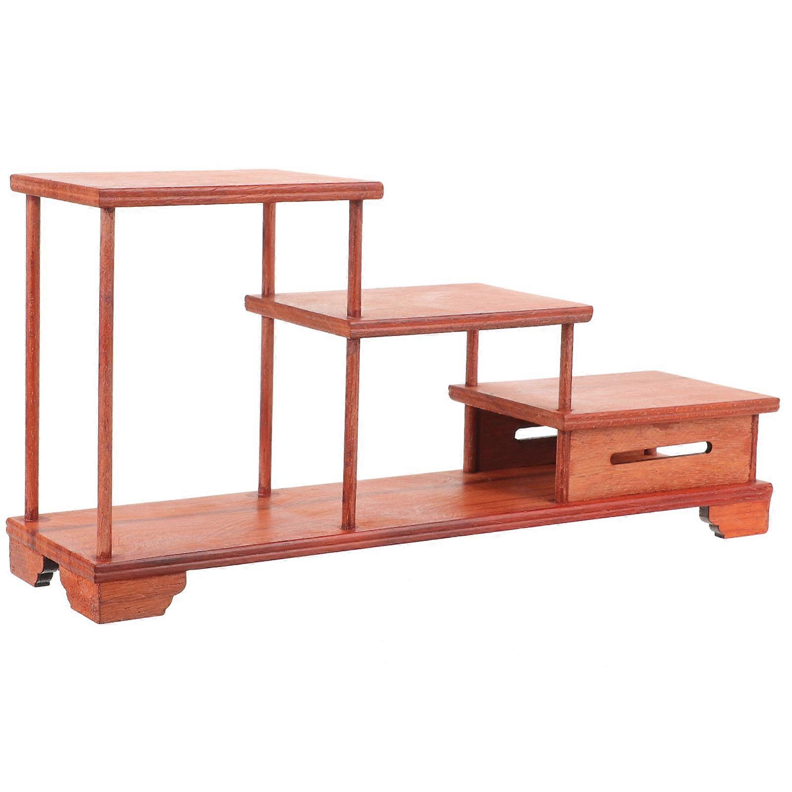 Dark Red Wooden Display Riser Stand for Storage Use Vintage Tiered Display Holder
