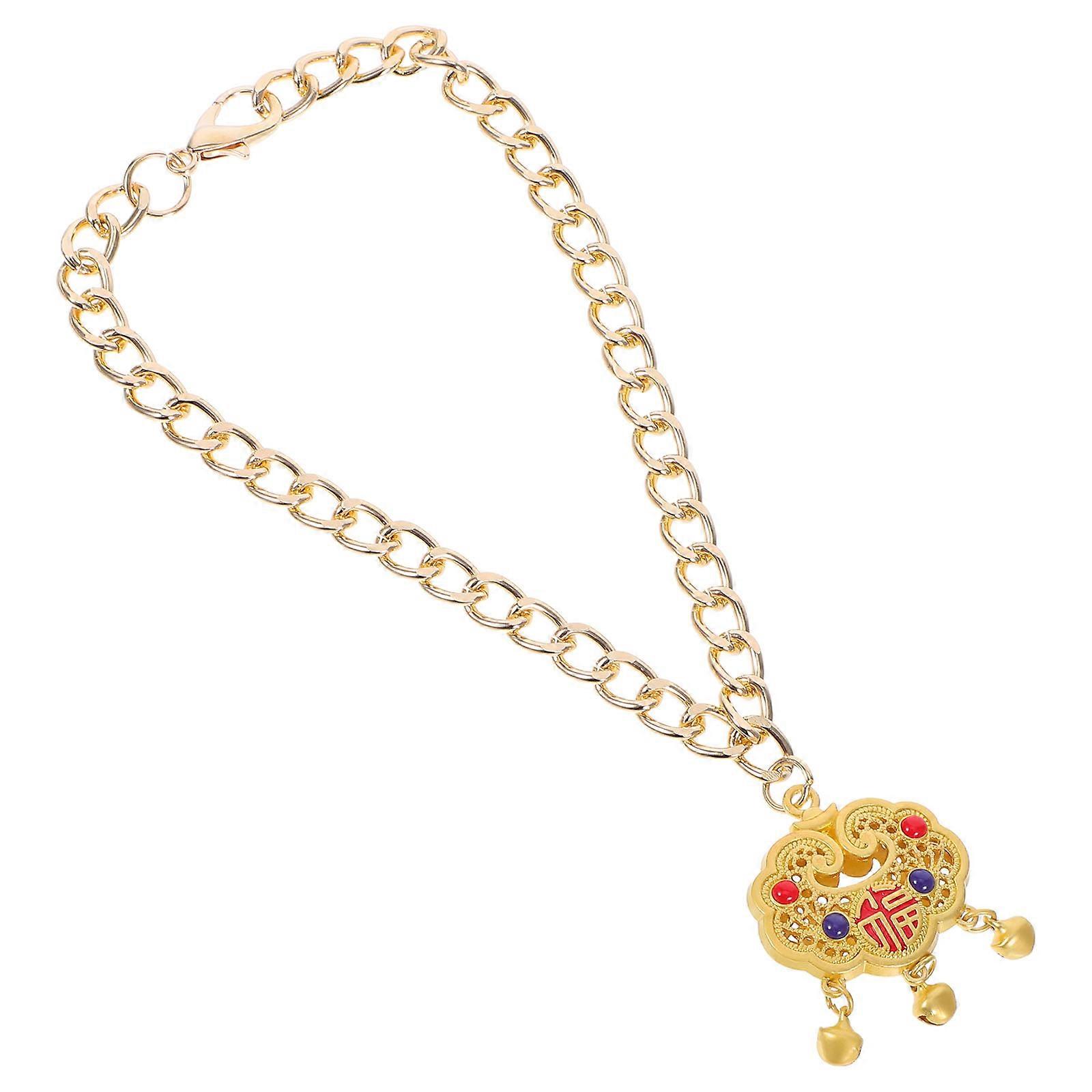 Metal Longevity Lock Pendant Necklace with Bell for Holiday Use