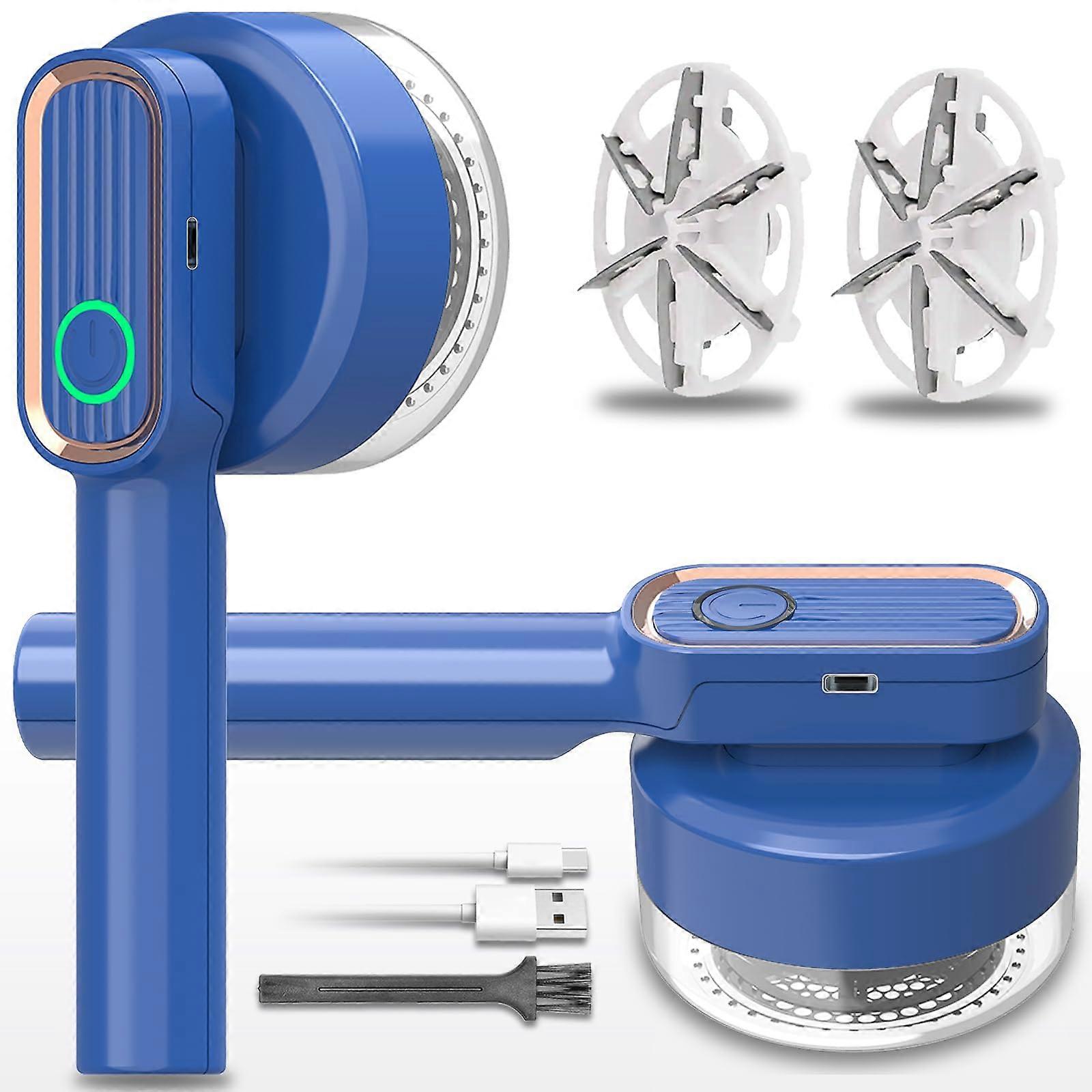 Fabric Shaver Lint Remover - 6-Blade Dual Head, Rechargeable USB-C, Stainless Steel Mesh - 1200mAh Battery, Large 6cm Shaving Surface, Blue