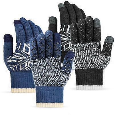 Keep your hands warm and fully functional during the coldest months with this CLDURHGE two-pair glove set featuring high-sensitivity touchscreen compatibility on the thumb, index, and middle fingers. Engineered with a cozy soft wool lining and a flexible elastic outer shell, these knitted five-finger gloves offer superior thermal insulation without sacrificing dexterity. Each set includes one classic black pair and one deep blue pair, both equipped with integrated triangular silicone rubber grips across the palms to prevent accidental drops and ensure a secure hold while driving, cycling, or handling a smartphone. The stretch-fit design and reinforced elastic cuffs create a windproof seal around the wrist, making them an essential accessory for winter running, hiking, or daily commuting. Durability meets modern convenience in these skin-safe, non-toxic gloves available in both standard universal and larger sizing to accommodate various hand dimensions. The high-friction anti-slip patterns provide a stable grip for outdoor sports and heavy-duty daily use, while the easy-care material remains resilient through frequent wear. Whether you are navigating via GPS on a morning run or texting in freezing temperatures, these gloves eliminate the need to expose your skin to the cold. This practical two-pack is ideal for keeping a spare pair in your car or gifting to a friend, ensuring reliable protection and connectivity throughout the entire winter season.