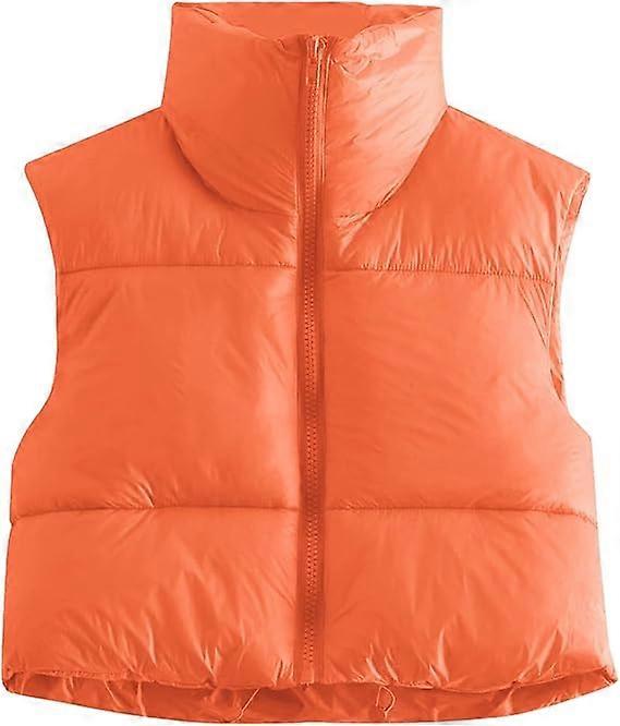 Women's Winter Vest - Stand-up Collar, Lightweight Sleeveless Padded Jacket, Warm Lined Coat, Zip-up - Orange, Size M