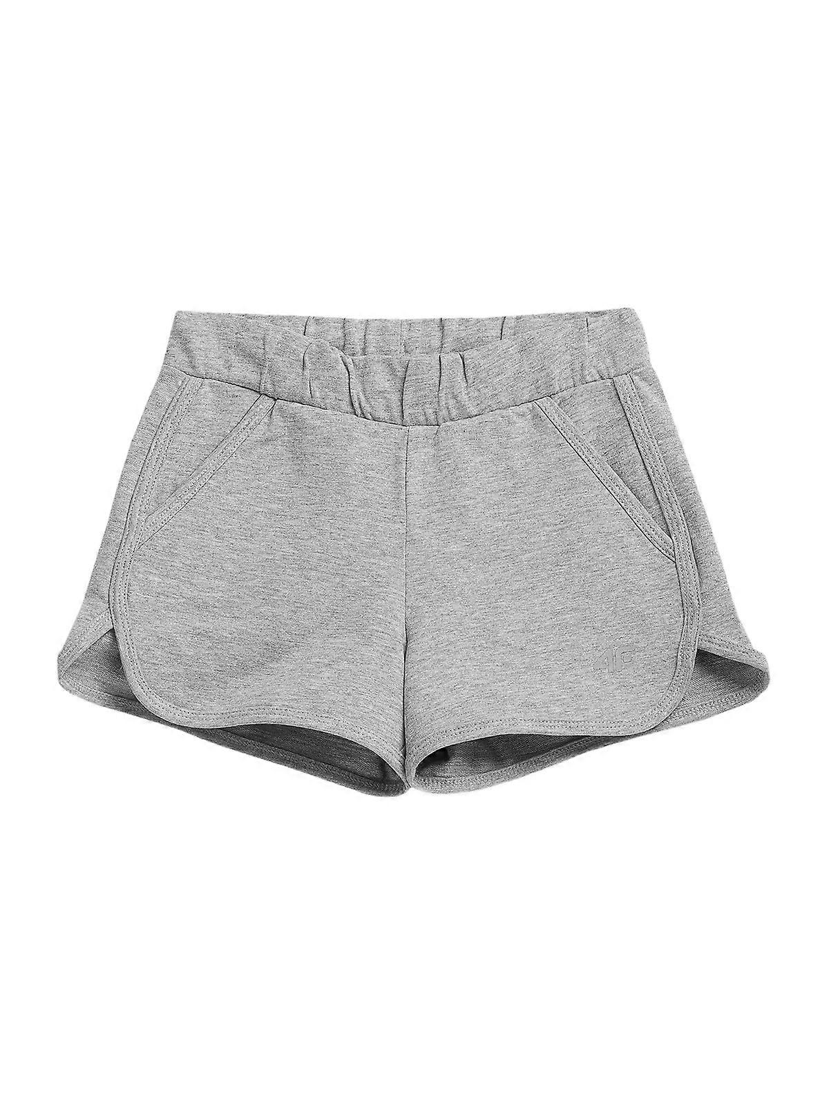 4F Girls' Cotton Sweat Shorts - Elastic Drawstring Waist, Two Open Pockets, Regular Fit - Grey, 128cm
