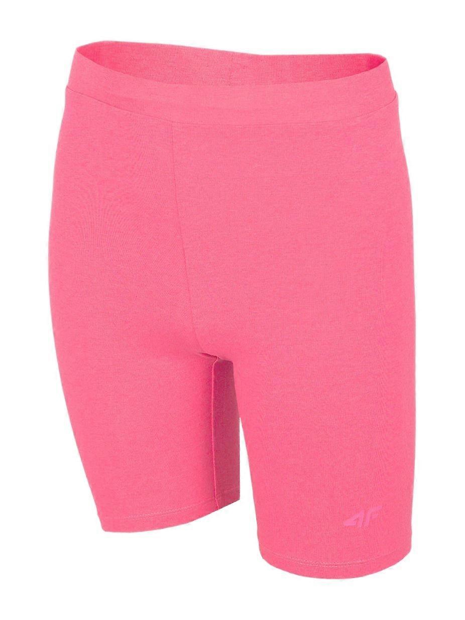 4F Girls Biker Shorts - Over-The-Knee Sport Leggings, High Cotton, Elastic Waist, Slim Fit - Pink, 158/164 cm