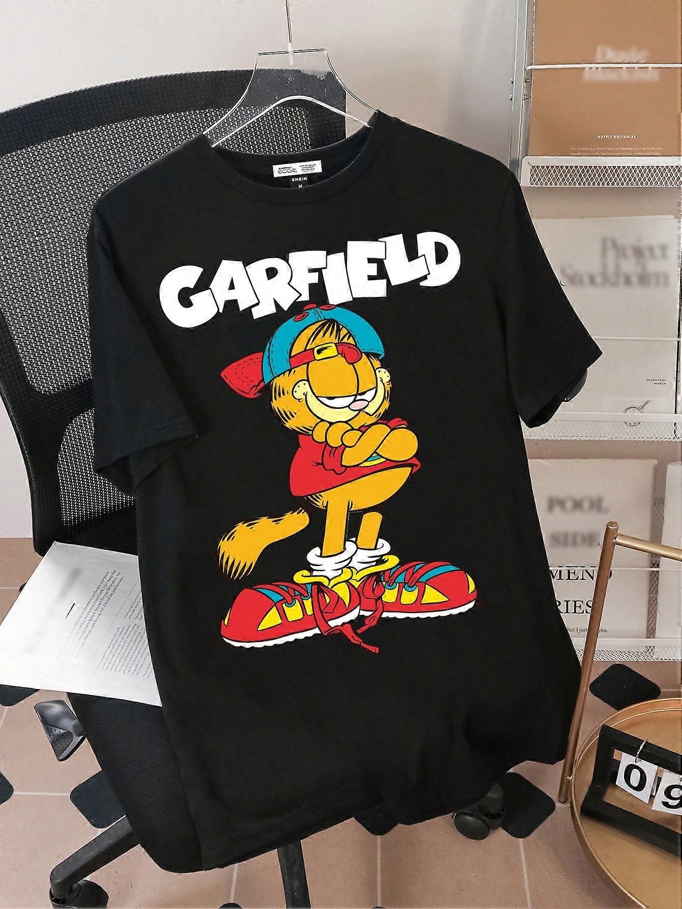 GARFIELD Men Cartoon & Letter Print Round Neck Short Sleeve T-Shirt
