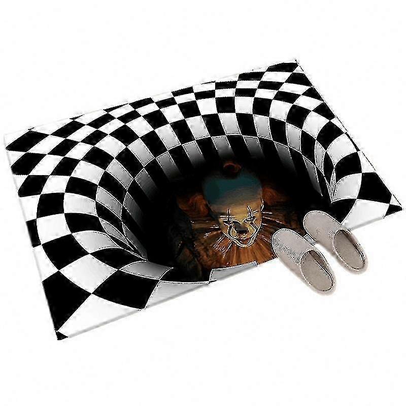 3D Stereo Checkered Vortex Rug Optical Illusion Floor Mat Funny Sensation Home Decor
