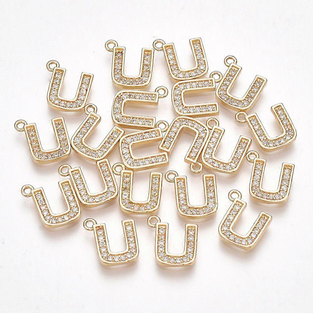 Brass Cubic Zirconia Charms Letter Clear Real 18K golden Plated Letter.U 9.5x9x1.5mm Hole: 1mm