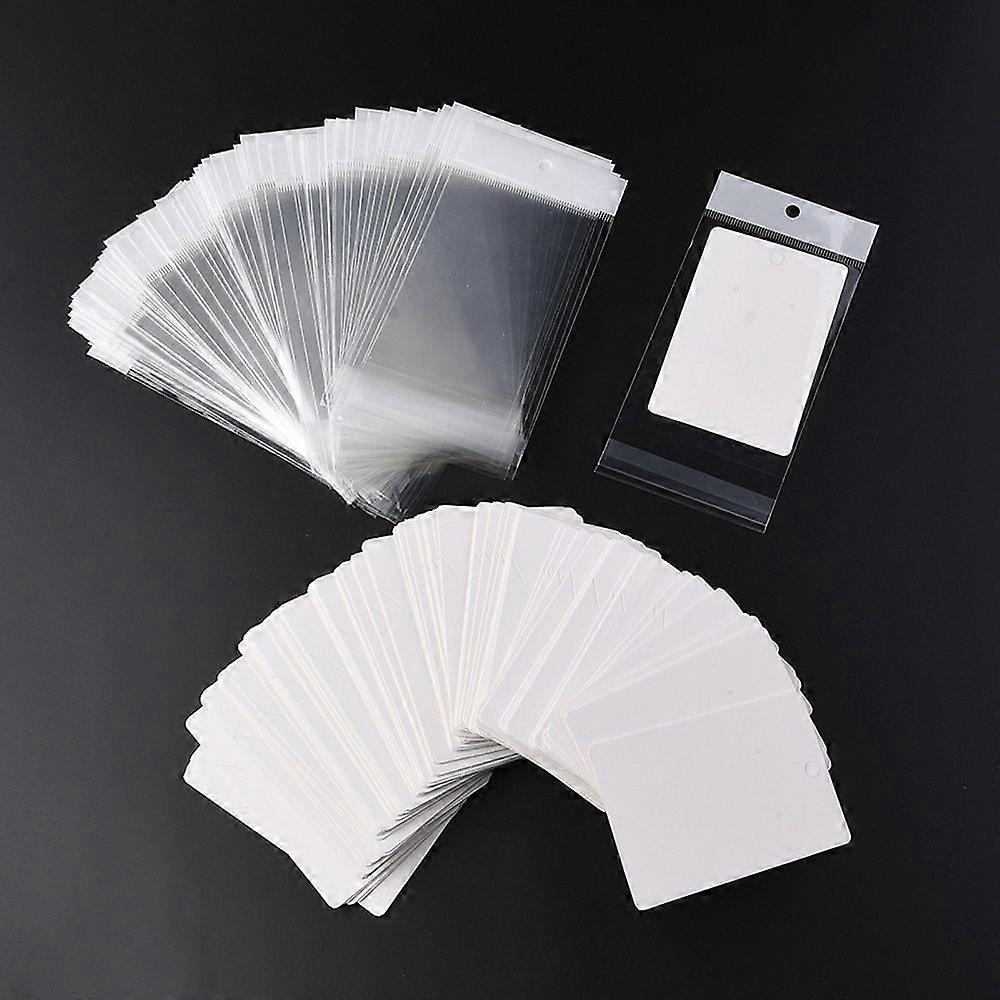 100pcs Rectangle Paper One Pair Earring Display Cards with Hanging Hole Jewelry Display Card for Pendants and Earrings Storage with 100pcs White Heade