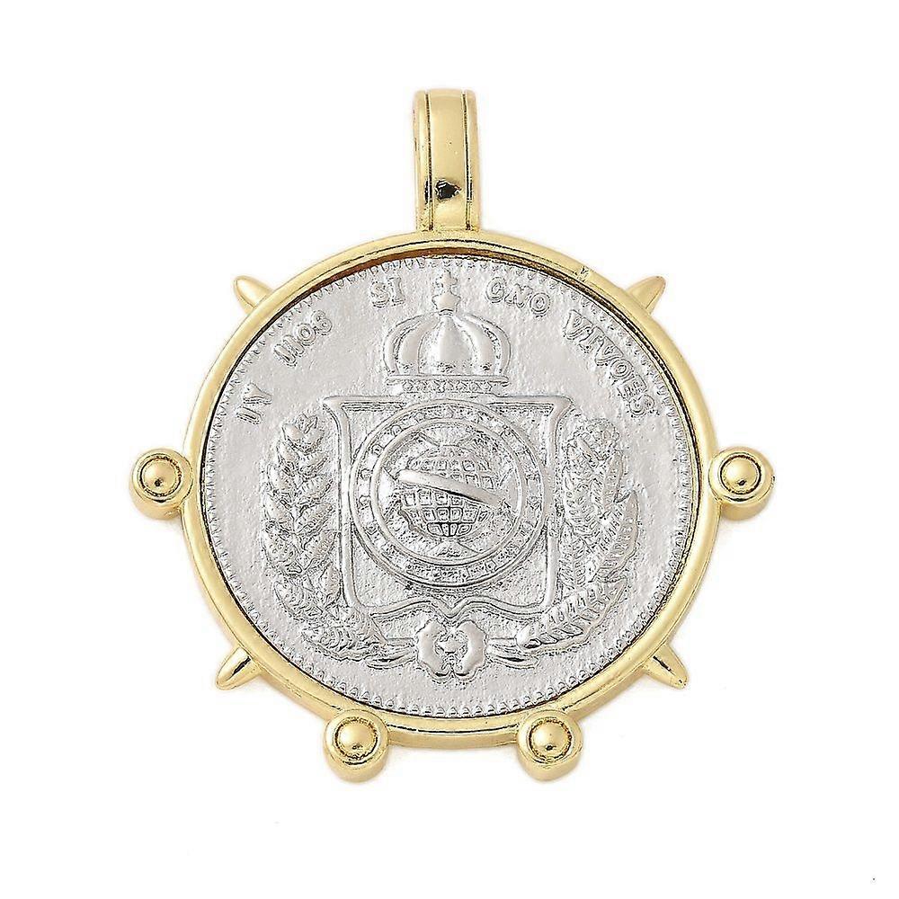 Brass Pendants Flat Round with Coin Rack Plating Cadmium Free Lead Free Long-Lasting Plated Platinum Golden 41x36.5x4.5mm Hole: 6.5x3.5mm