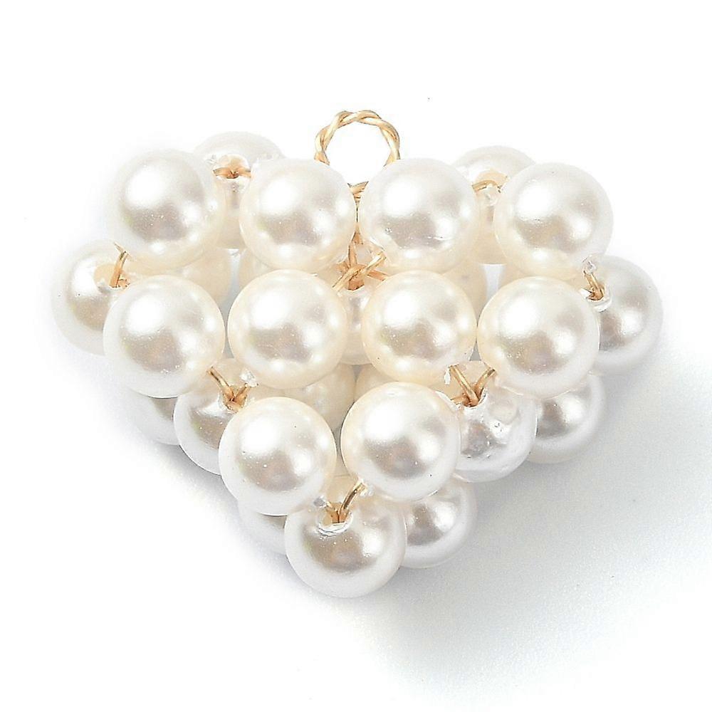 Shell Pearl Copper Wire Wrapped Pendants Heart Cluster Charms Golden White 18.5x22x10mm Hole: 2mm