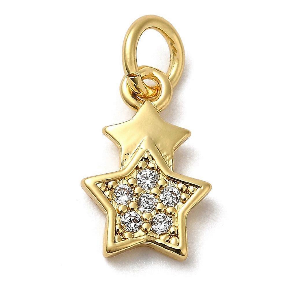 Rack Plating Brass Pendants with Cubic Zirconia Lead Free Cadmium Free Star Real 18K golden Plated 11.5x7.5x1.5mm