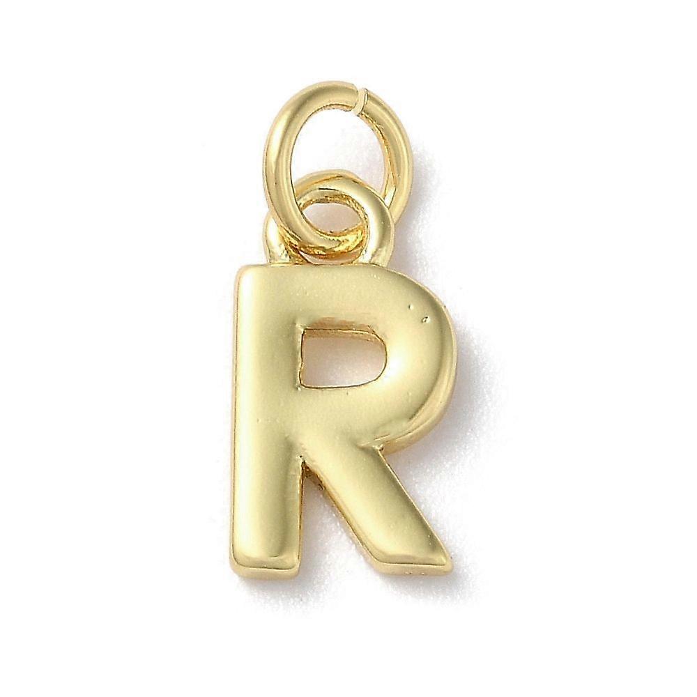 Rack Plating Brass Charms Cadmium Free Lead Free Long-Lasting Plated Real 18K golden Plated Letter R 12x6.5x1.5mm Hole: 3.2mm