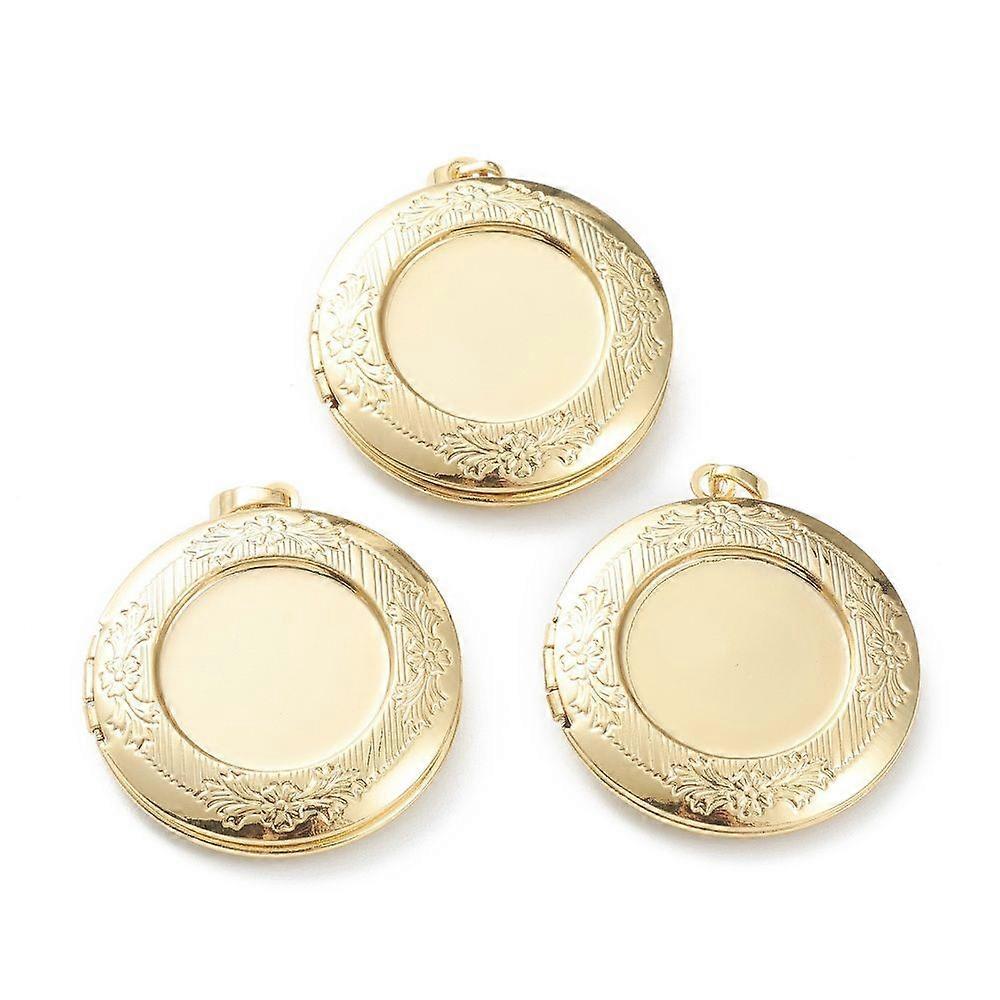 Brass Locket Pendants Photo Frame Pendants for Necklaces Long-Lasting Plated Flat Round Real 18K golden Plated 36x32x6mm Hole: 5.5x4mm 24.5mm Inner Di