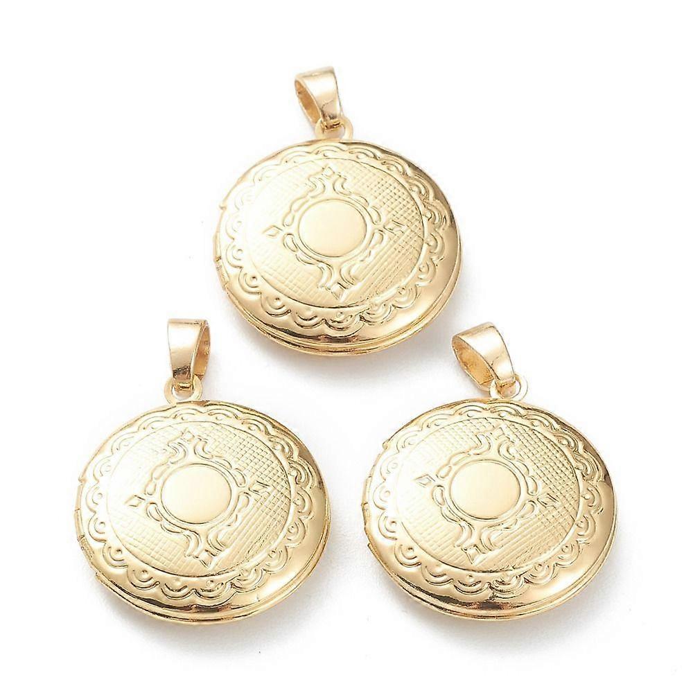 Brass Locket Pendants Photo Frame Pendants for Necklaces Long-Lasting Plated Flat Round Real 18K golden Plated 23x20x5.5mm Hole: 5.5x4mm 14mm Inner Di