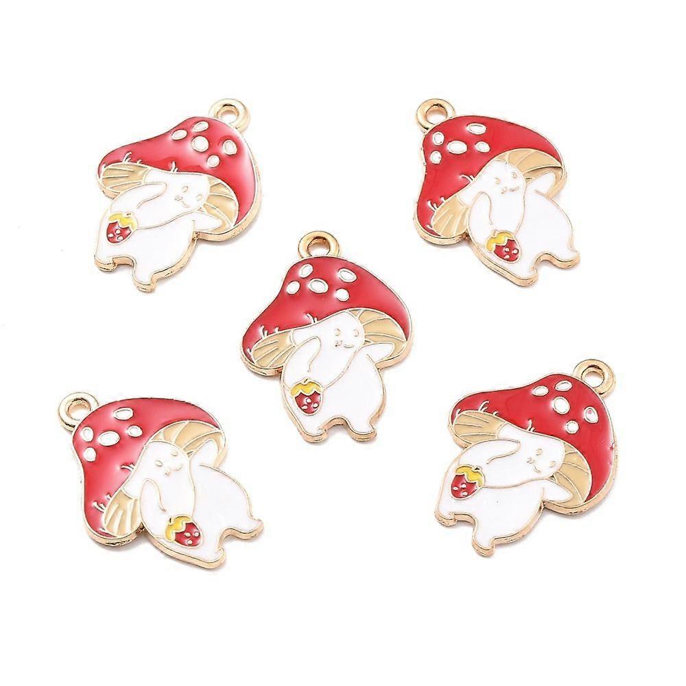 Autumn Theme Alloy Enamel Pendants Mushroom Elf Red 25x18x1.5mm Hole: 1.8mm