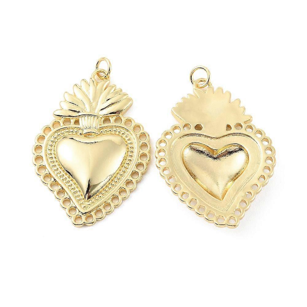 Rack Plating Brass Pendants Cadmium Free Lead Free Long-Lasting Plated with Jump Ring Sacred Heart Charm Real 18K golden Plated 37x25.5x4mm Hole: 3.2m