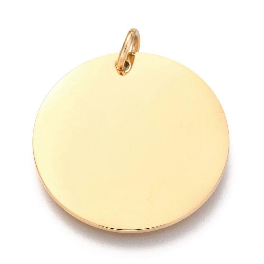 Ion Plating(IP) 304 Stainless Steel Charms Mirror Polished Finish with Jump Rings Blank Stamping Tag Flat Round Golden 25x1mm Hole: 3.5mm