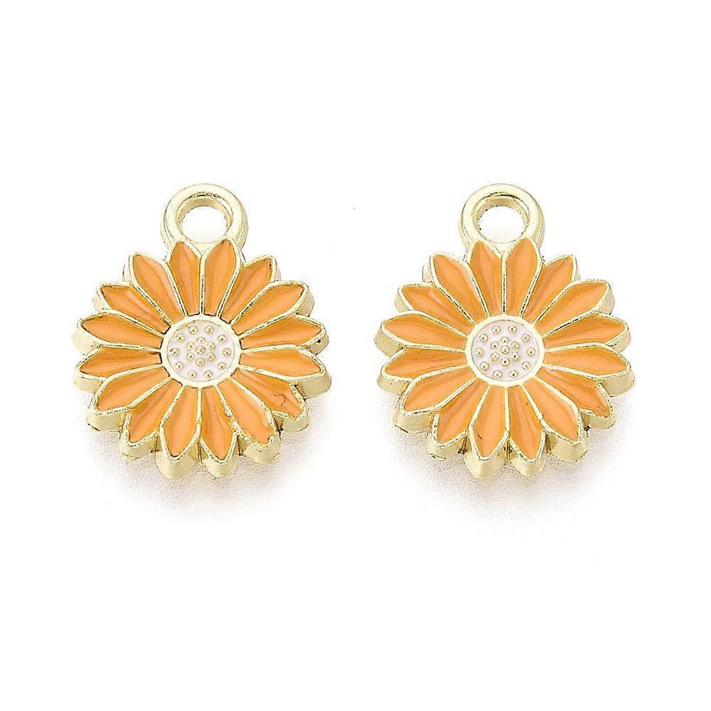 Alloy Enamel Charms Light golden Sunflower Charm Goldenrod 17x13x2mm Hole: 2mm