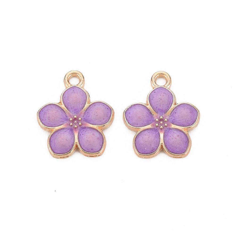 Light golden Plated Alloy Enamel Pendants Flower Cadmium Free Lead Free Dark Orchid 17x14.5x1.5mm Hole: 1.6mm