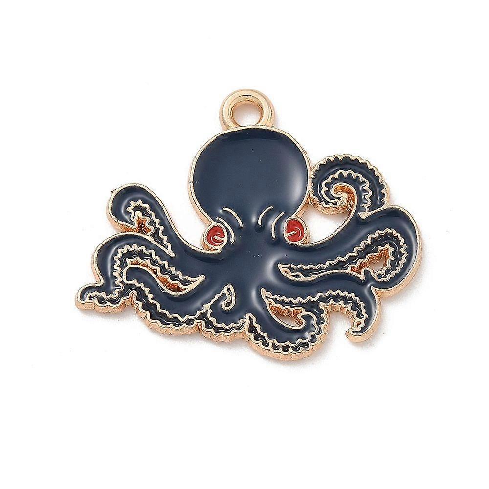 Size: 20.5x26x1.5mm/0.81x1.02x0.06inch Hole: 1.8mm/0.07inch Material: Alloy+Enamel Color: Prussian Blue Metal Color: Light Gold Shape: Octopus Usage: Pendants Package Size: 100 pc per package
