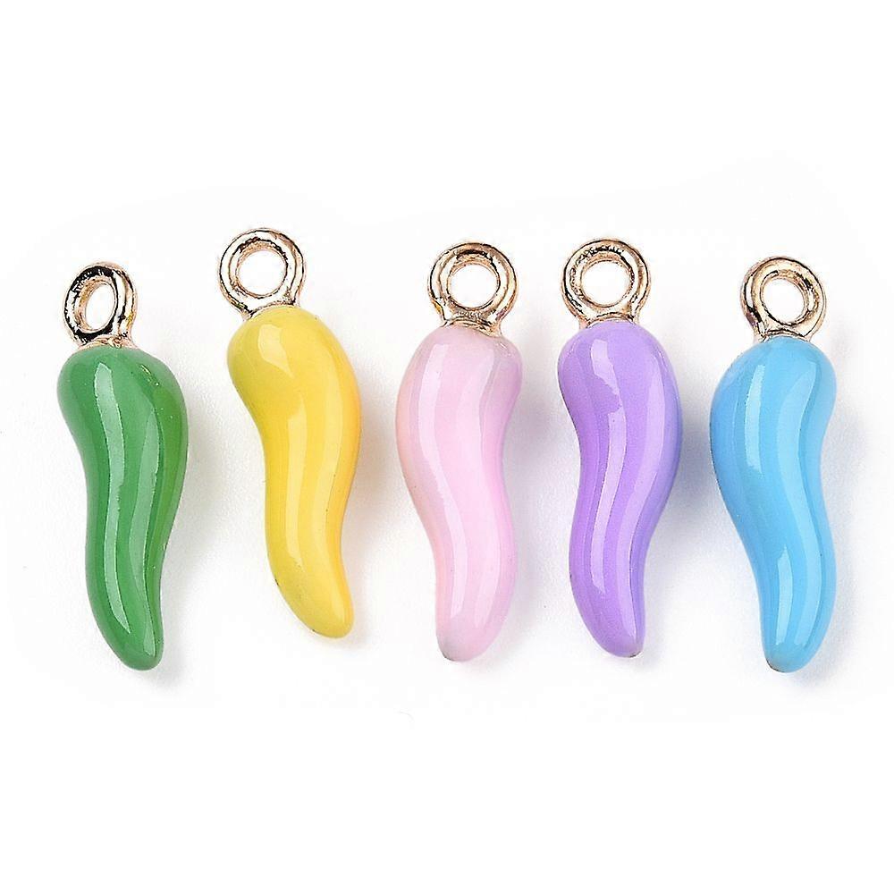 Alloy Enamel Pendants Cadmium Free Nickel Free Lead Free Light golden Hot Horn of Plenty/Italian Horn Cornicello Charms Mixed color 21x6x6mm Hole: 2mm