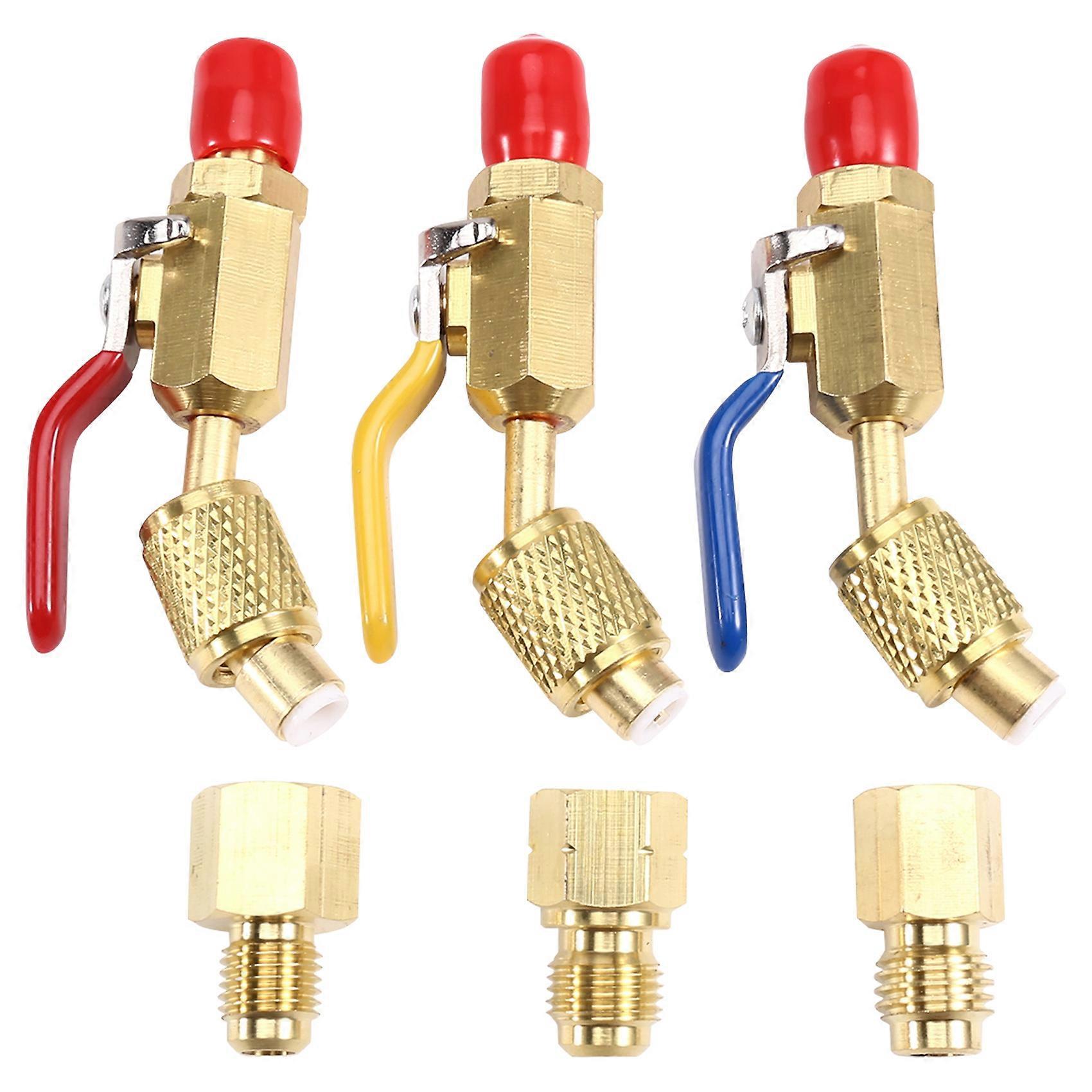 3 Sets Refrigerant Angled Compact Ball Valve for R410A R134A R12 R22 R502 AC HVAC Refrigeration Charging Hoses Car Part