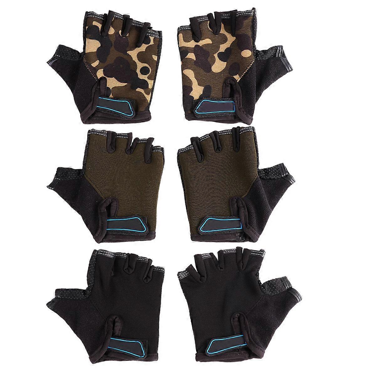 Children's Breathable Riding Gloves Half Finger for Fitness 3Pairs Outdoor Use
