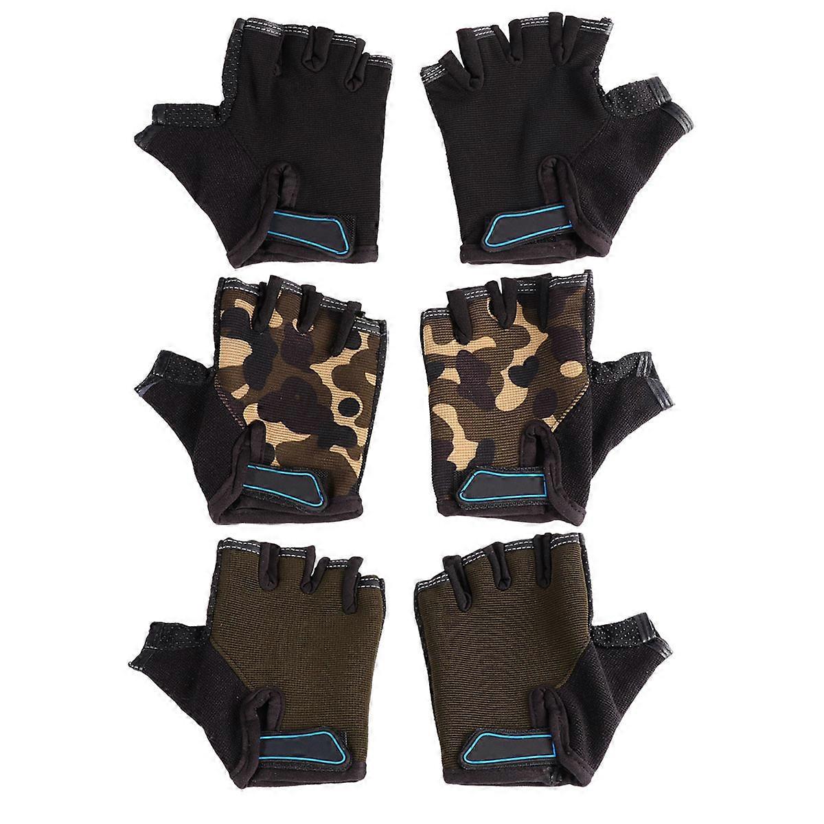 Kids Biking Gloves Half Finger for Outdoor Training 3Pairs Shockproof Design