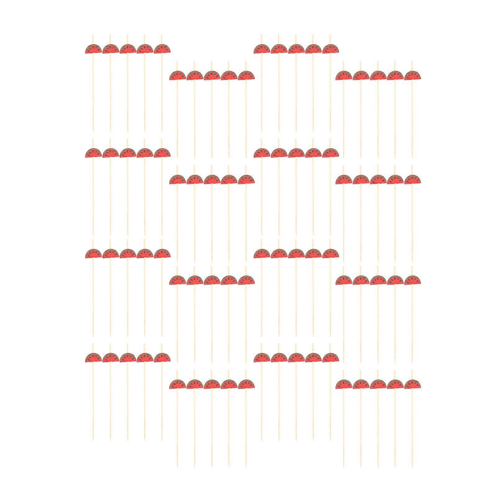 Bamboo Cake Sticks for Decoration 100Pcs Fruit Picks Red