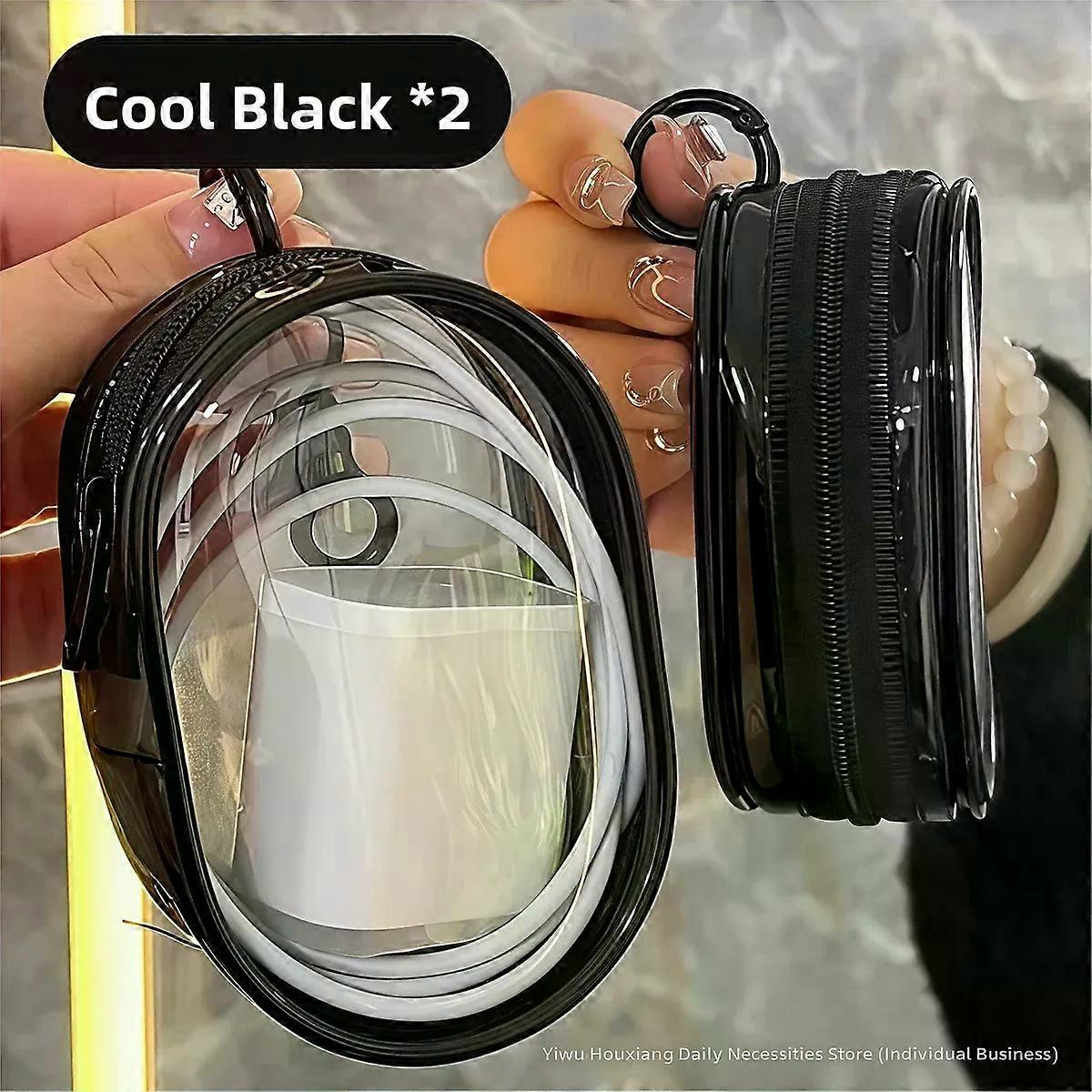Cable Storage Bag Black PVC Cosmetic Transparent Jewelry Organizer Portable Storage Pouch for Data Cable Earphone Coin Charger