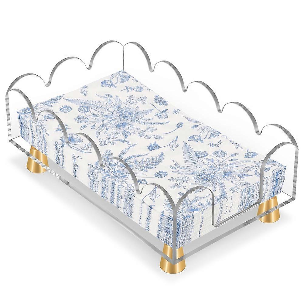 Optimal Size for Versatility: Measuring 8.7 x 5 x 2.36 inches, this acrylic napkin holder is designed to fit standard guest towels/hand towels of various sizes (8.3 x 4.7Inch, 7.3 x 3.7Inch, 6.3 x 2.7Inch). Its rectangular shape enhances storage capacity, making it ideal for bathrooms, kitchens, and event settings. Premium Acrylic Construction: Crafted from acrylic, this clear napkin holder combines durability with elegance. The scalloped frame design not only adds a touch of sophistication but also complements a wide range of decor styles, from modern to traditional. Convenient Side-Opening Design: The user-friendly side opening of this cocktail napkin holder allows for easy access to napkins, ensuring they are always within reach. This feature is perfect for high-traffic areas such as bathrooms, buffets, and party settings, enhancing guest convenience. Functional and Adjustable Metal Feet: This holder comes with removable metal feet that can be easily attached or detached to suit various needs. The raised base prevents water splashes from damaging the napkins, while non-slip pads ensure stability on any surface, from countertops to tables. Multipurpose and Space-Saving: Not just for napkins, this versatile holder can also be used to store jewelry, decorative items, or crafts, making it a practical addition to any space. Its compact design ensures it fits neatly on vanities, bar counters, coffee tables, or dining areas. Color:Transparent Material:Acrylic Package Contents: 1 * Napkin Box Only the above package content, other products are not included. Note: Light reflection and different displays may cause the color of the item in the picture a little different from the real thing. The measurement allowed error is +/- 1-3cm.