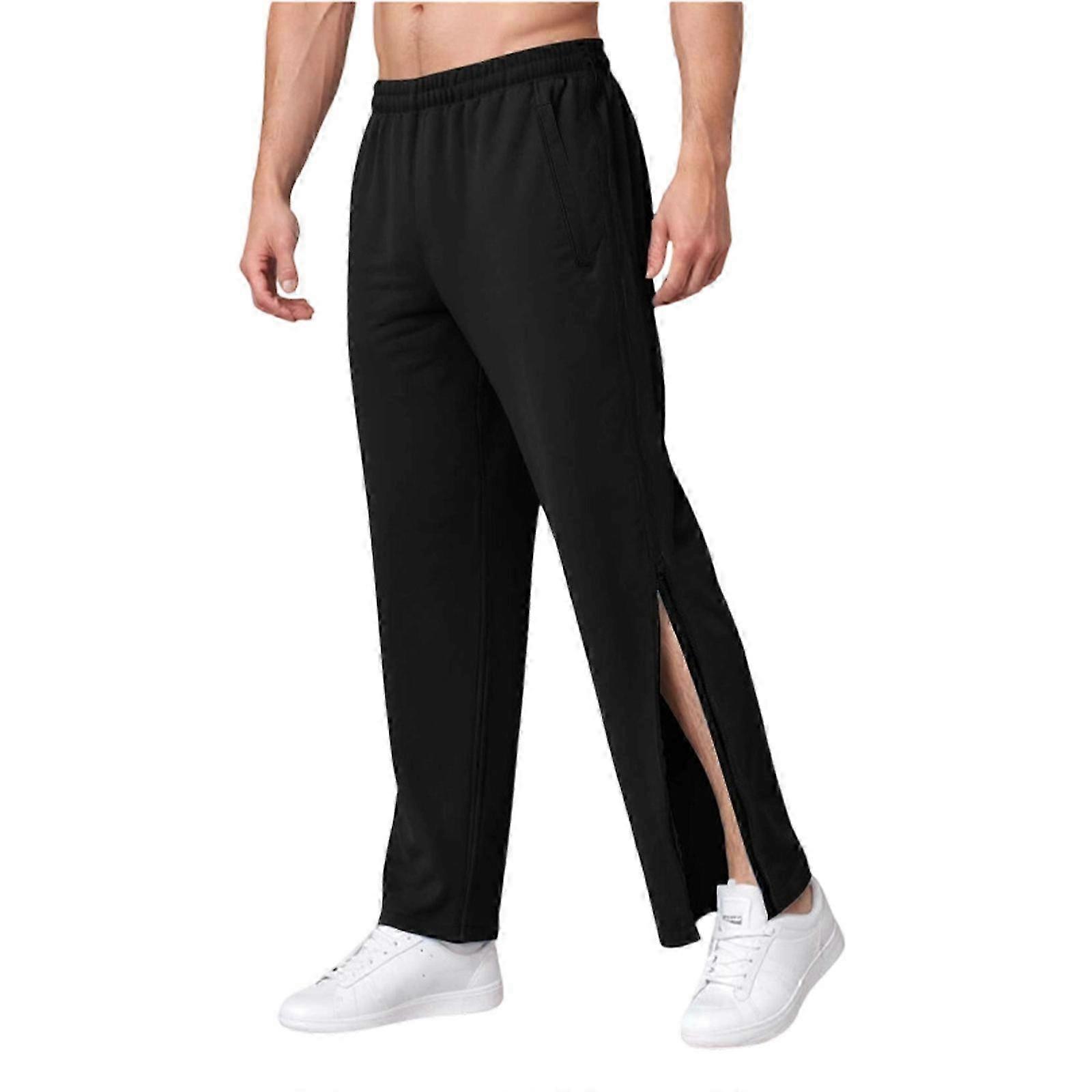 Breathable Polyester Basketball Pants for Men, Tear Resistant with Zippered Leg Openings, XXL Navy Blue Training Trousers