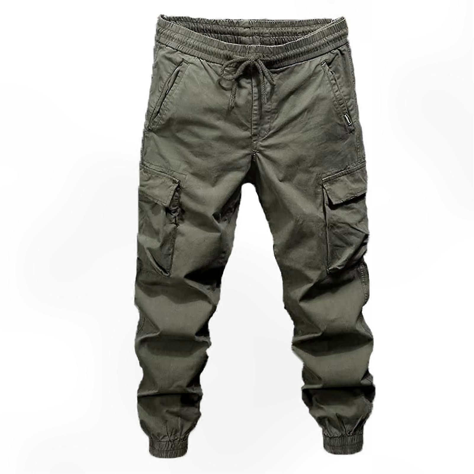 Men's Casual Elastic Waist Cargo Pants with Drawstring and Multi-Pockets for Outdoor Activities and Streetwear Style