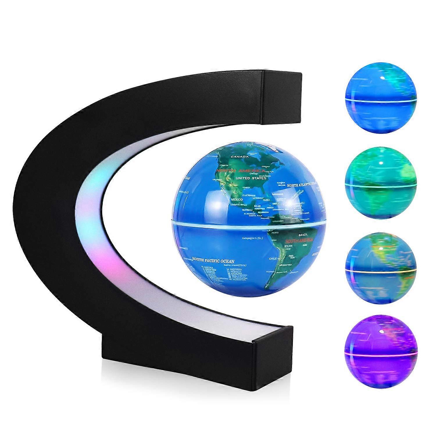Magnetic Levitating Globe 3 Inch Auto Rotating World Map with Multicolor LED Lights for Desk Gift